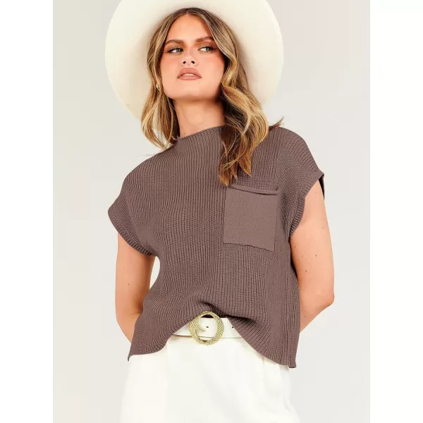 ANRABESS Women Casual Sleeveless Mock Neck Ribbed Knit Loose Fit Trendy Spring Cropped Sweater Top with Pocket(Cofffe)