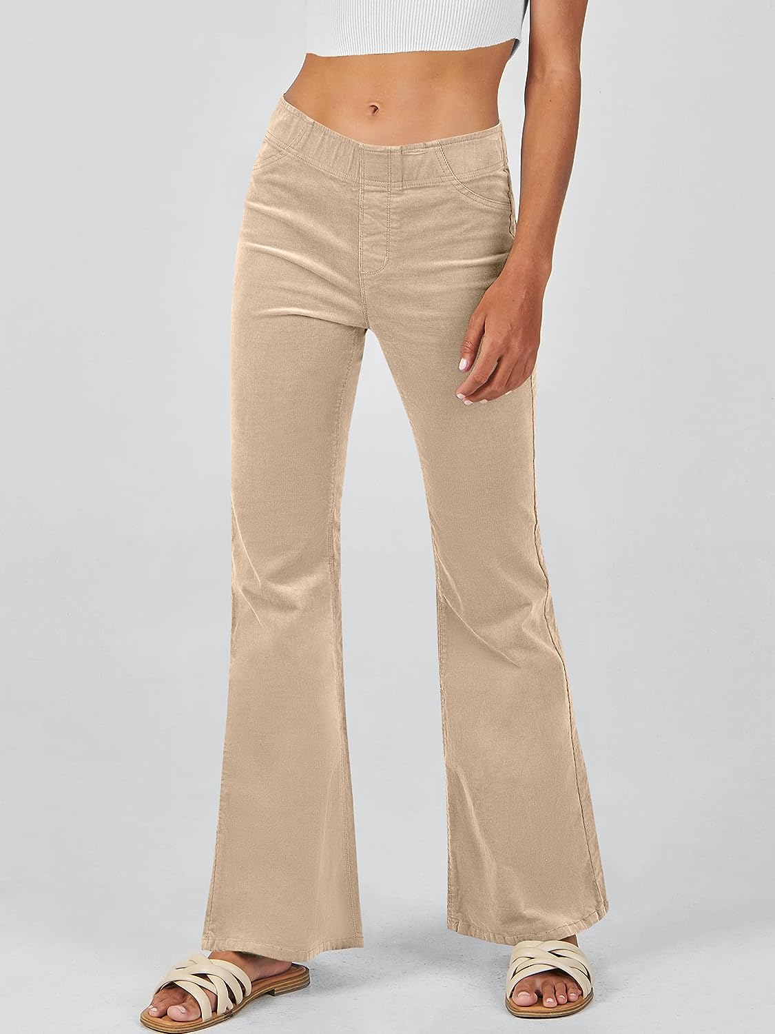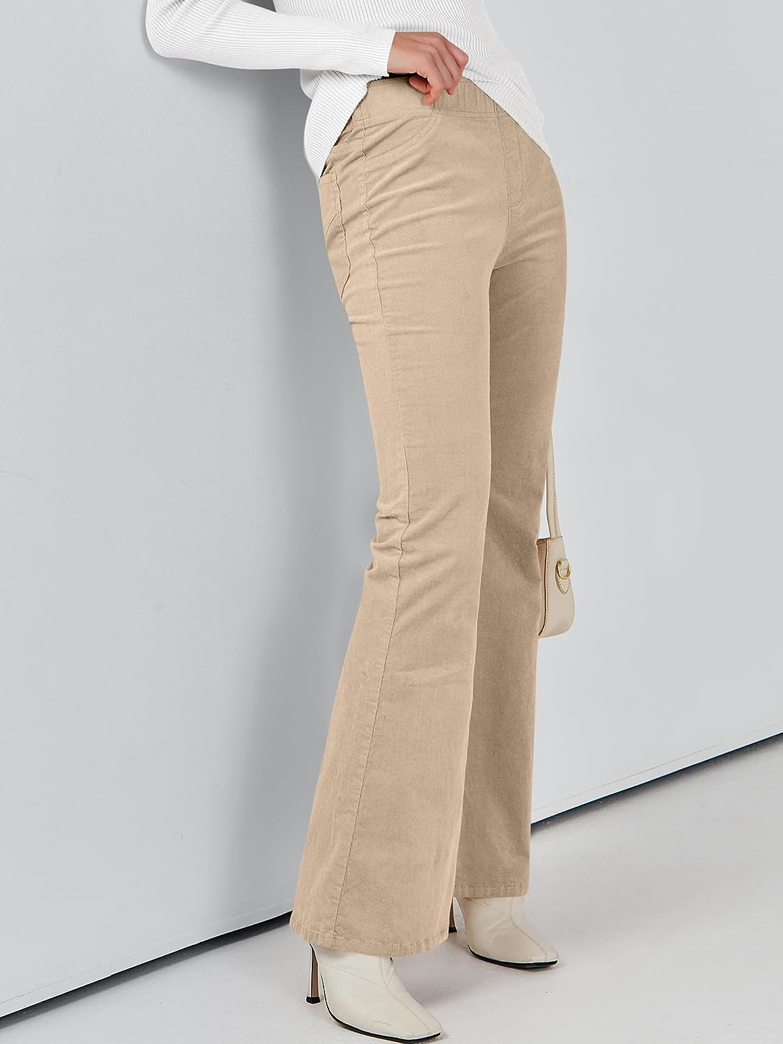 ANRABESS Women Corduroy Flare Pants High Waist Bell Bottom Casual Baggy Y2K Skinny Jeans(Light Khaki)