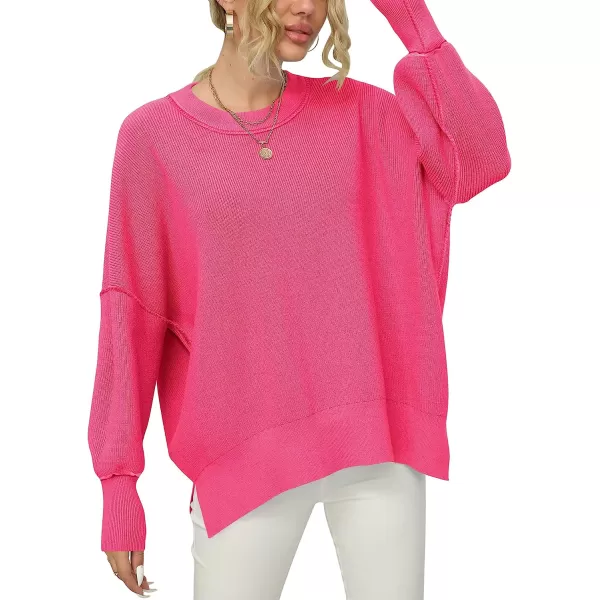 ANRABESS Women Crewneck Batwing Sleeve Oversized Side Slit Ribbed Knit Pullover Sweater Top(Rose)