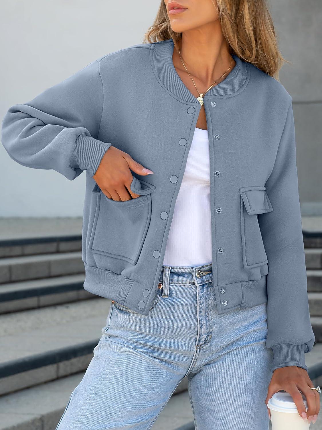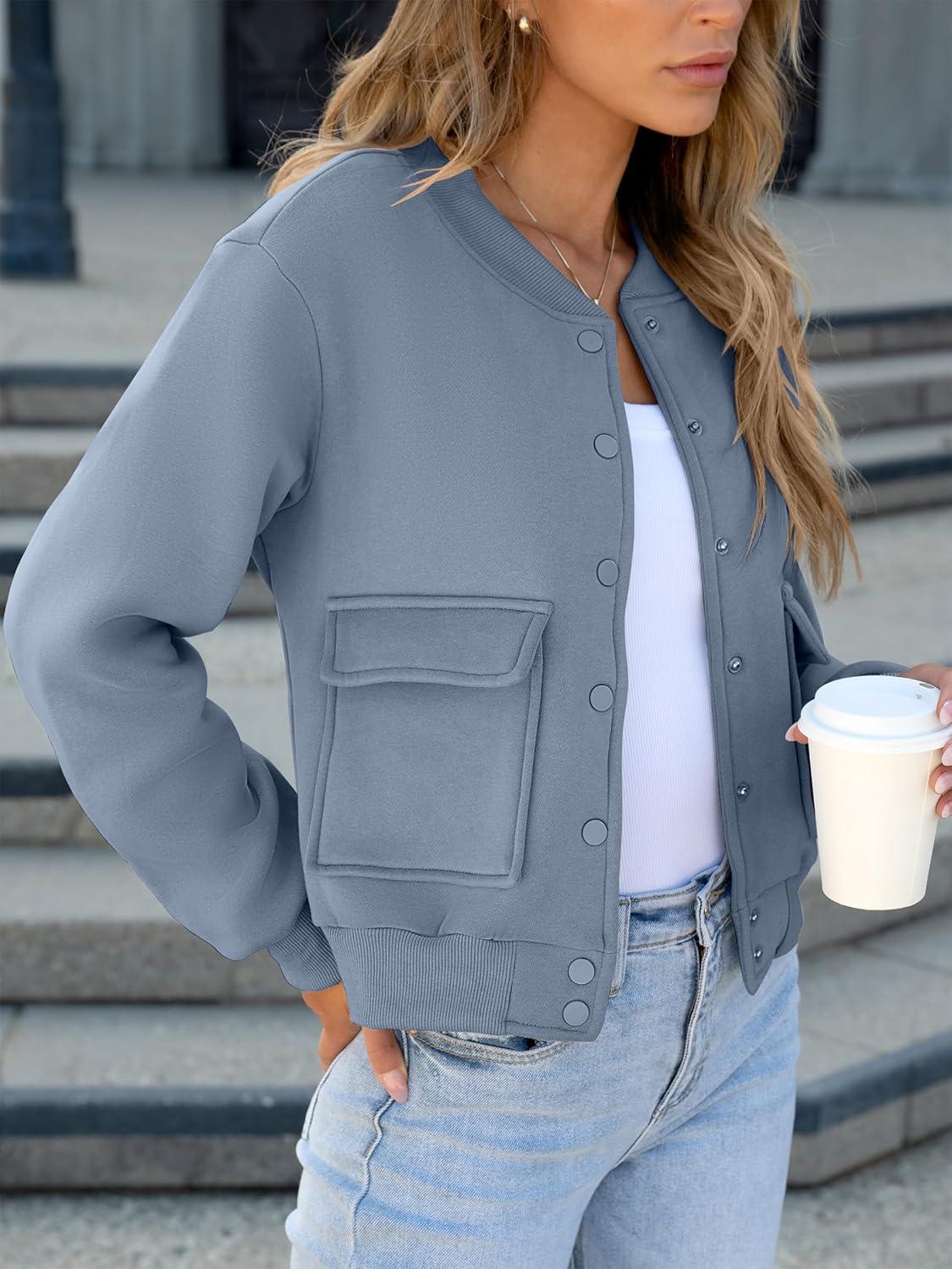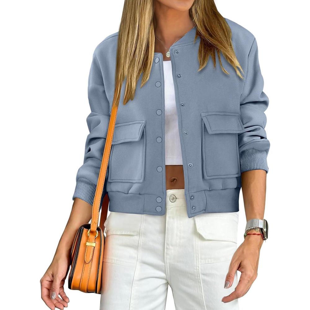ANRABESS Women Cropped Bomber Jacket 2025 Fashion Casual Trendy Varsity Y2k Jackets Fall Outfits(Grey Blue)