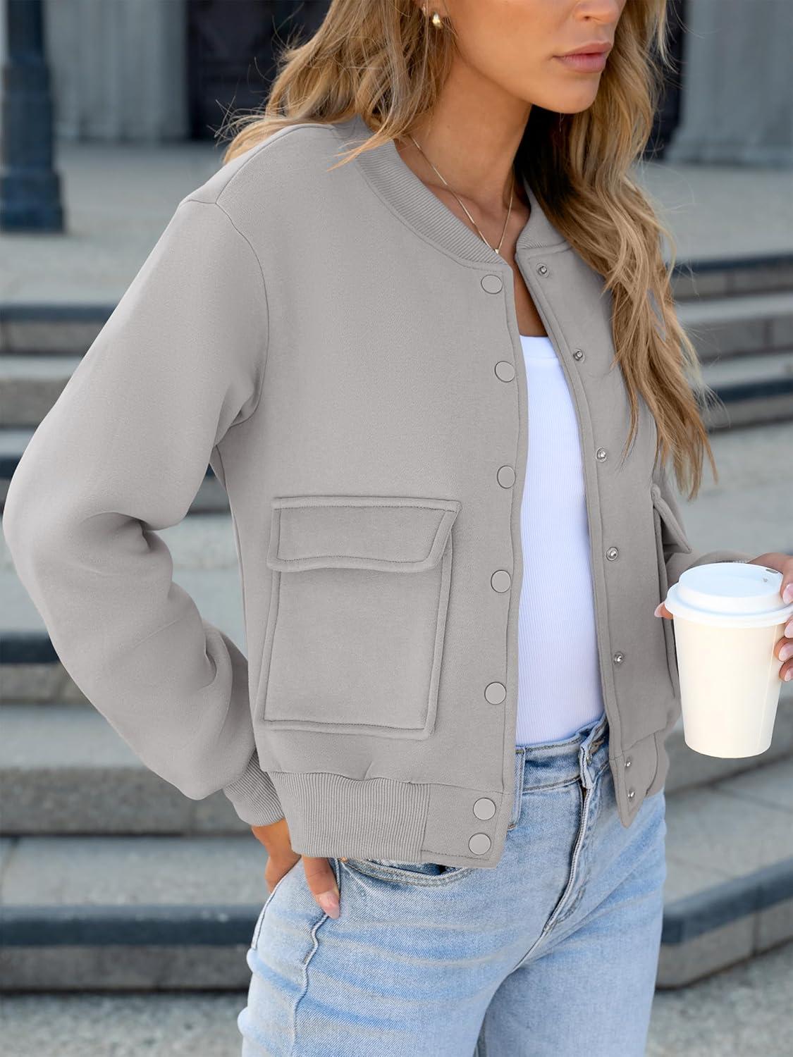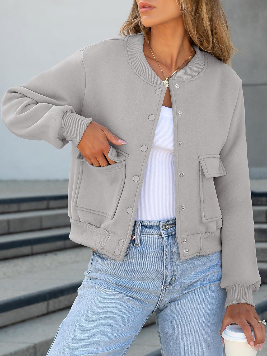 ANRABESS Women Cropped Bomber Jacket 2025 Fashion Casual Trendy Varsity Y2k Jackets Fall Outfits(Grey)