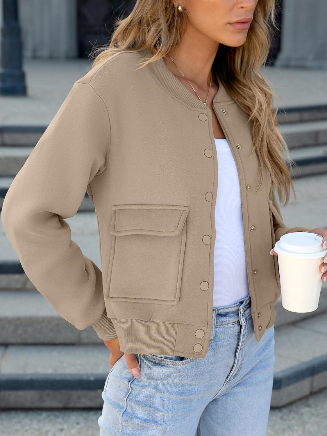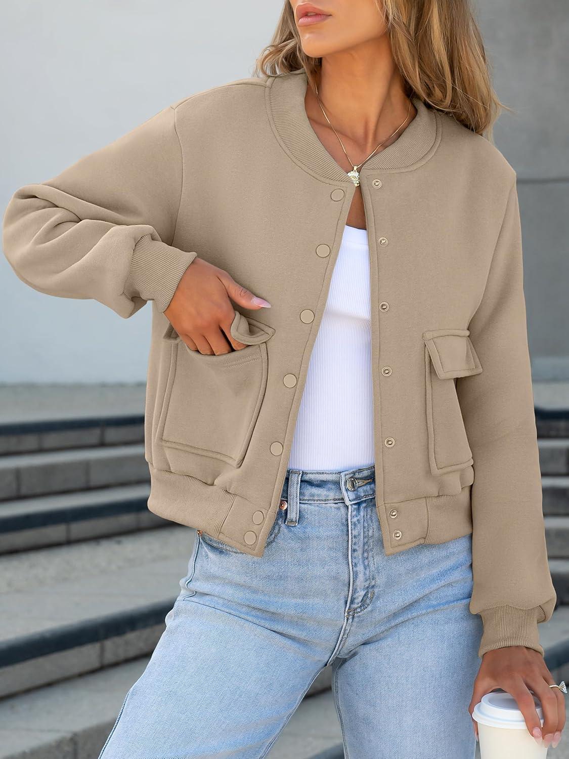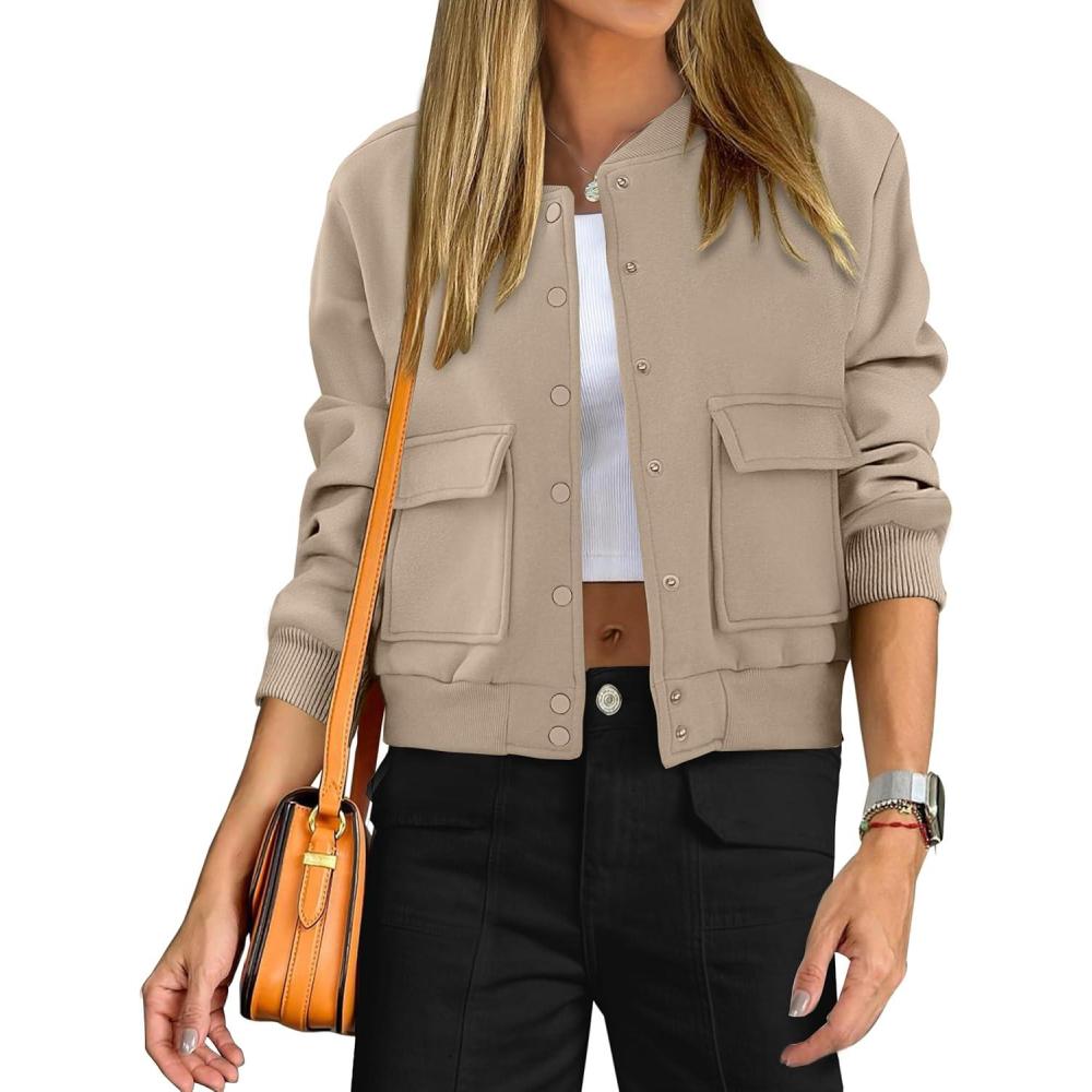 ANRABESS Women Cropped Bomber Jacket 2025 Fashion Casual Trendy Varsity Y2k Jackets Fall Outfits(Khaki)
