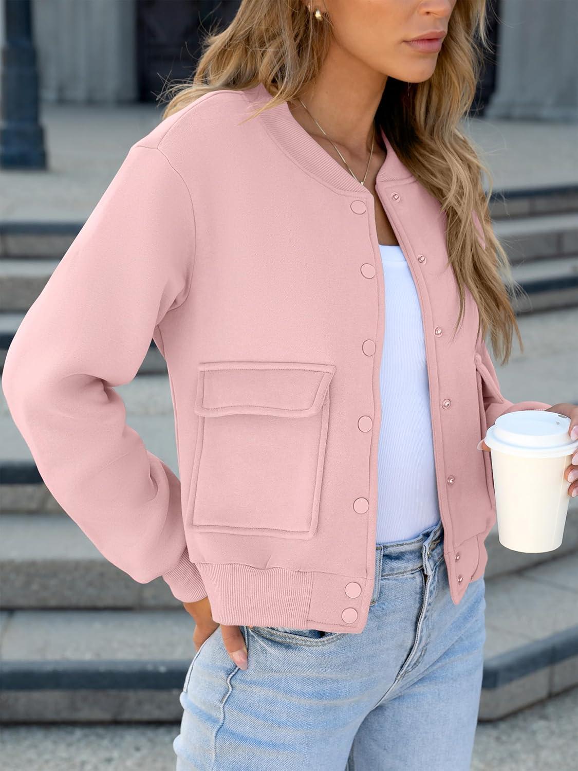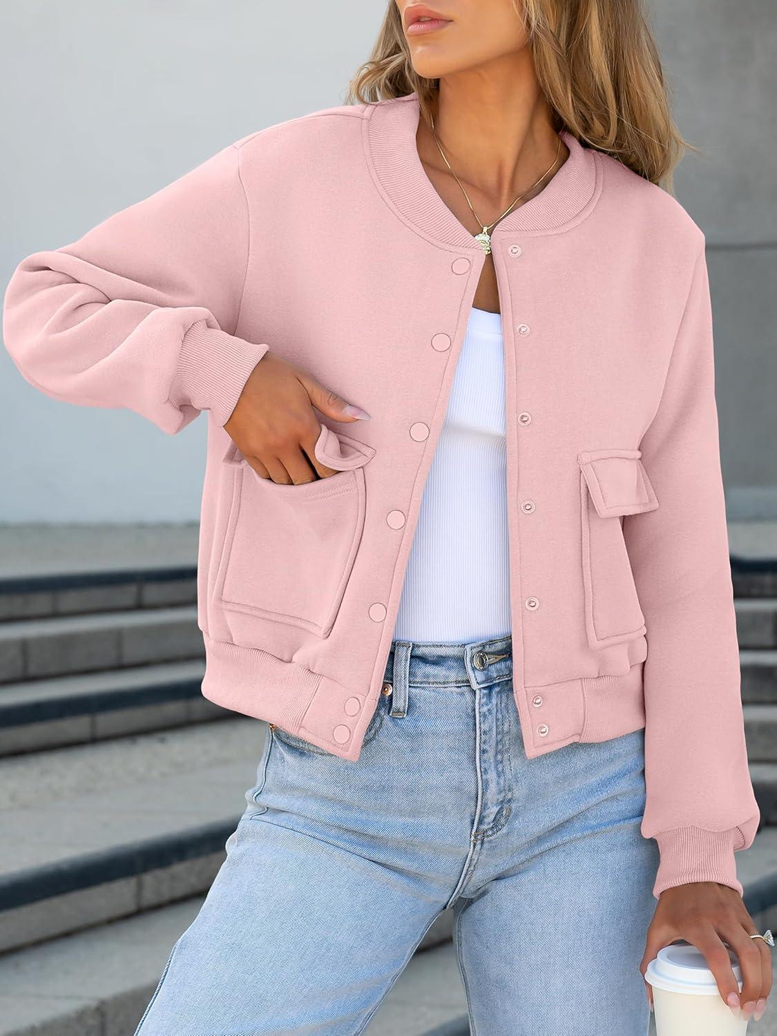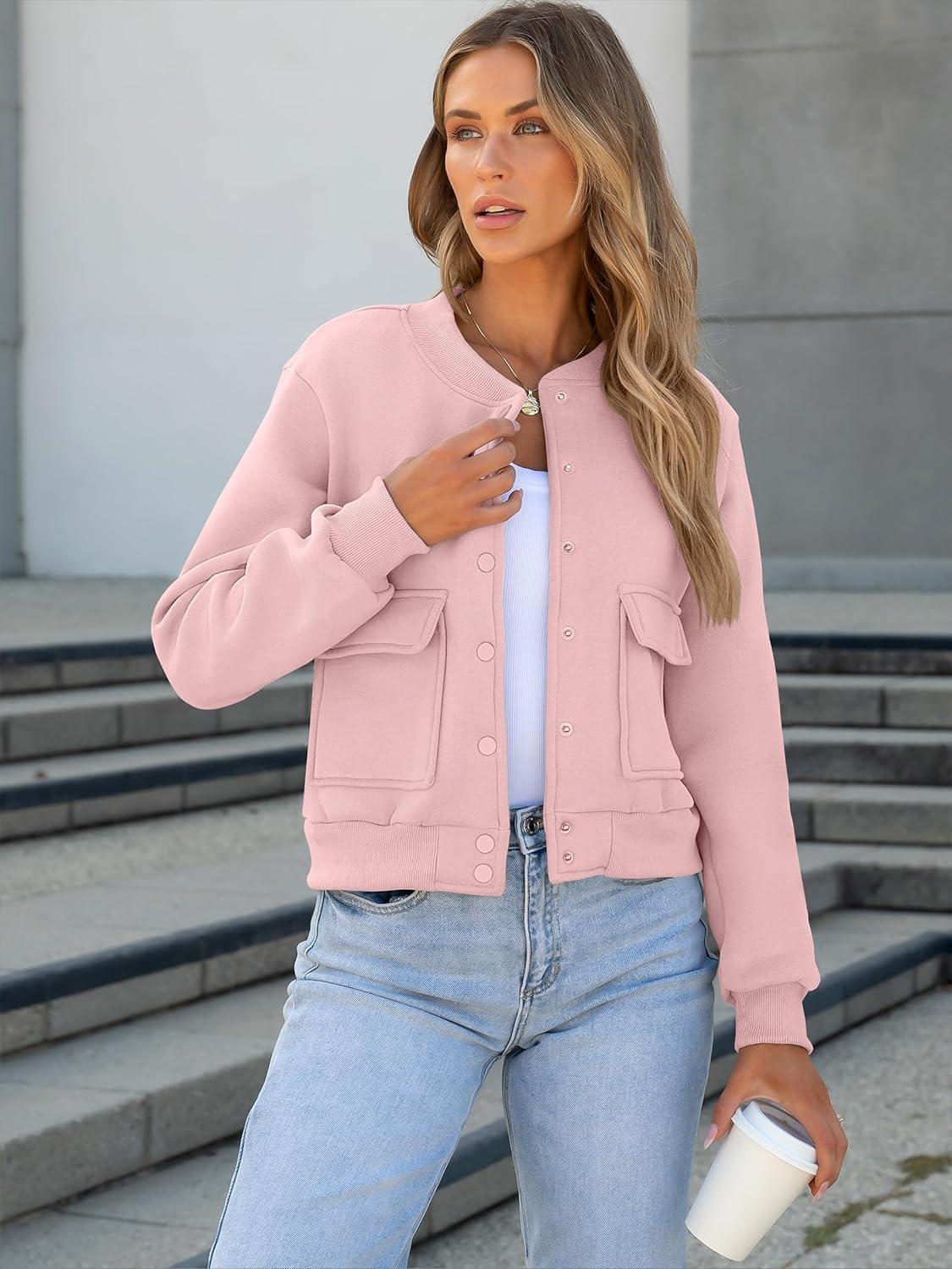 ANRABESS Women Cropped Bomber Jacket 2025 Fashion Casual Trendy Varsity Y2k Jackets Fall Outfits(Pink)