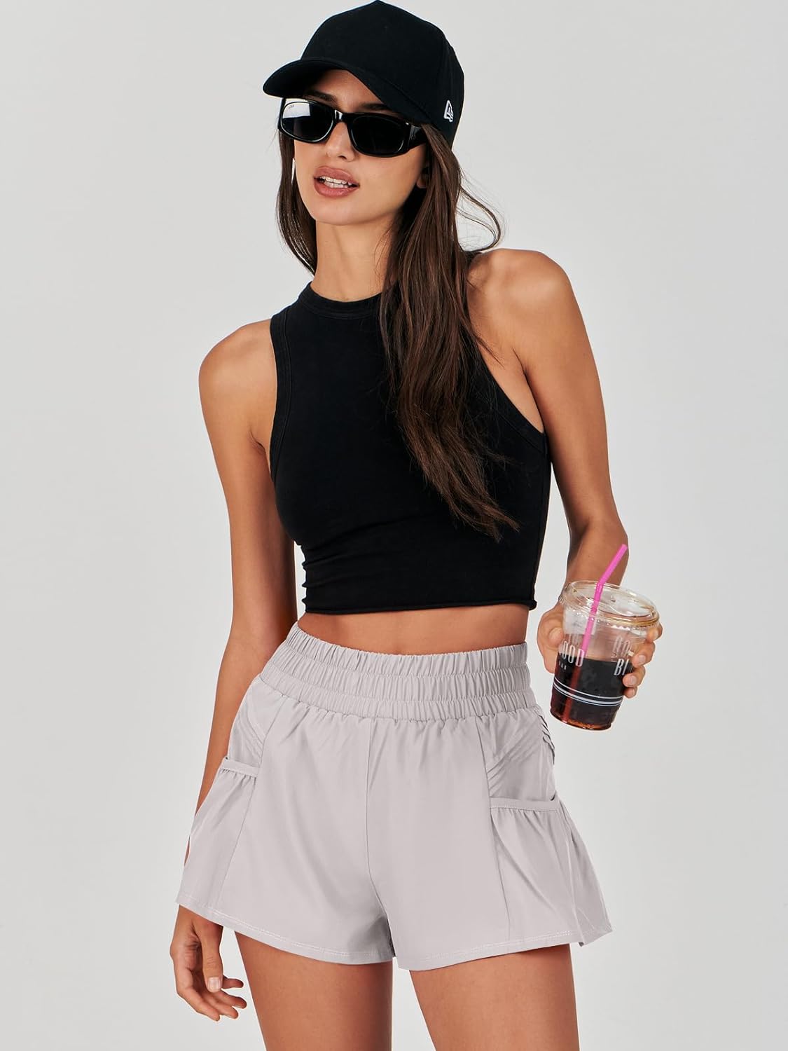 Be the first to review “ANRABESS Women High Waisted Quick Dry Flowy Shorts Gym Workout Running Athletic Short with Pockets(Grey)”