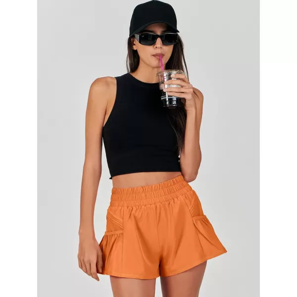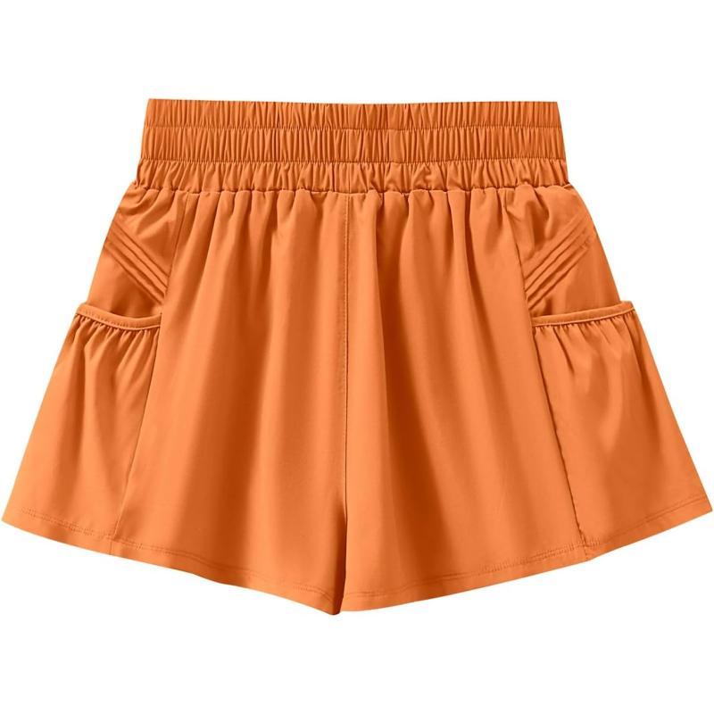 ANRABESS Women High Waisted Quick Dry Flowy Shorts Gym Workout Running Athletic Short with Pockets(Orange)