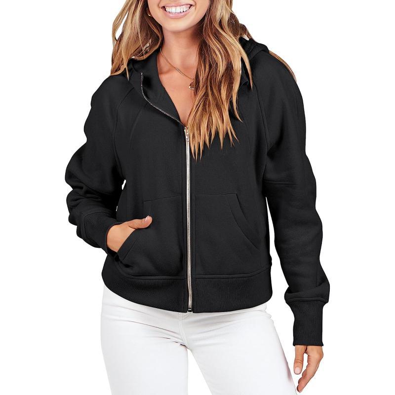 imageANRABESS Women Hoodies Fleece Lined Full Zipper Sweatshirts Long Sleeve Crop Tops Clothes Sweater Thumb HoleBlack