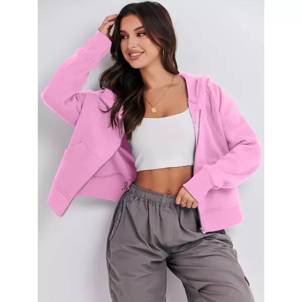 ANRABESS Women Hoodies Fleece Lined Full Zipper Sweatshirts Long Sleeve Crop Tops Clothes Sweater Thumb Hole(Pink)