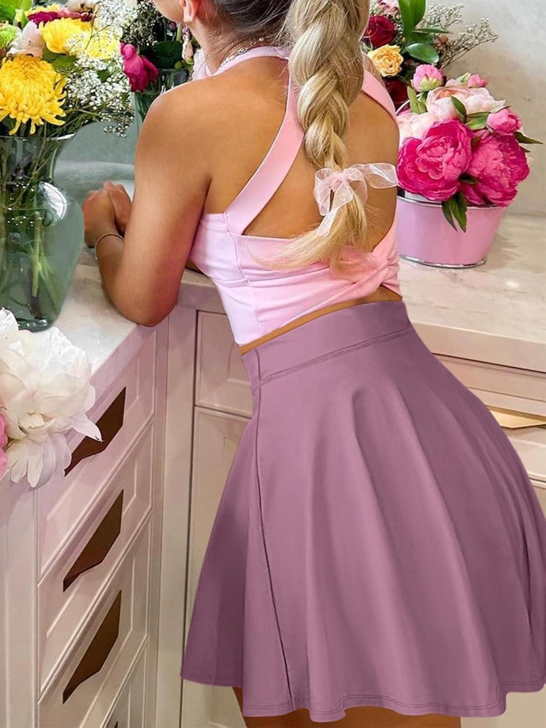 ANRABESS Women Knee Length Tennis Golf Skorts Skirts Summer High Waisted Athletic Skirt Casual Travel Built-in Shorts Clothes(Deep Purple)