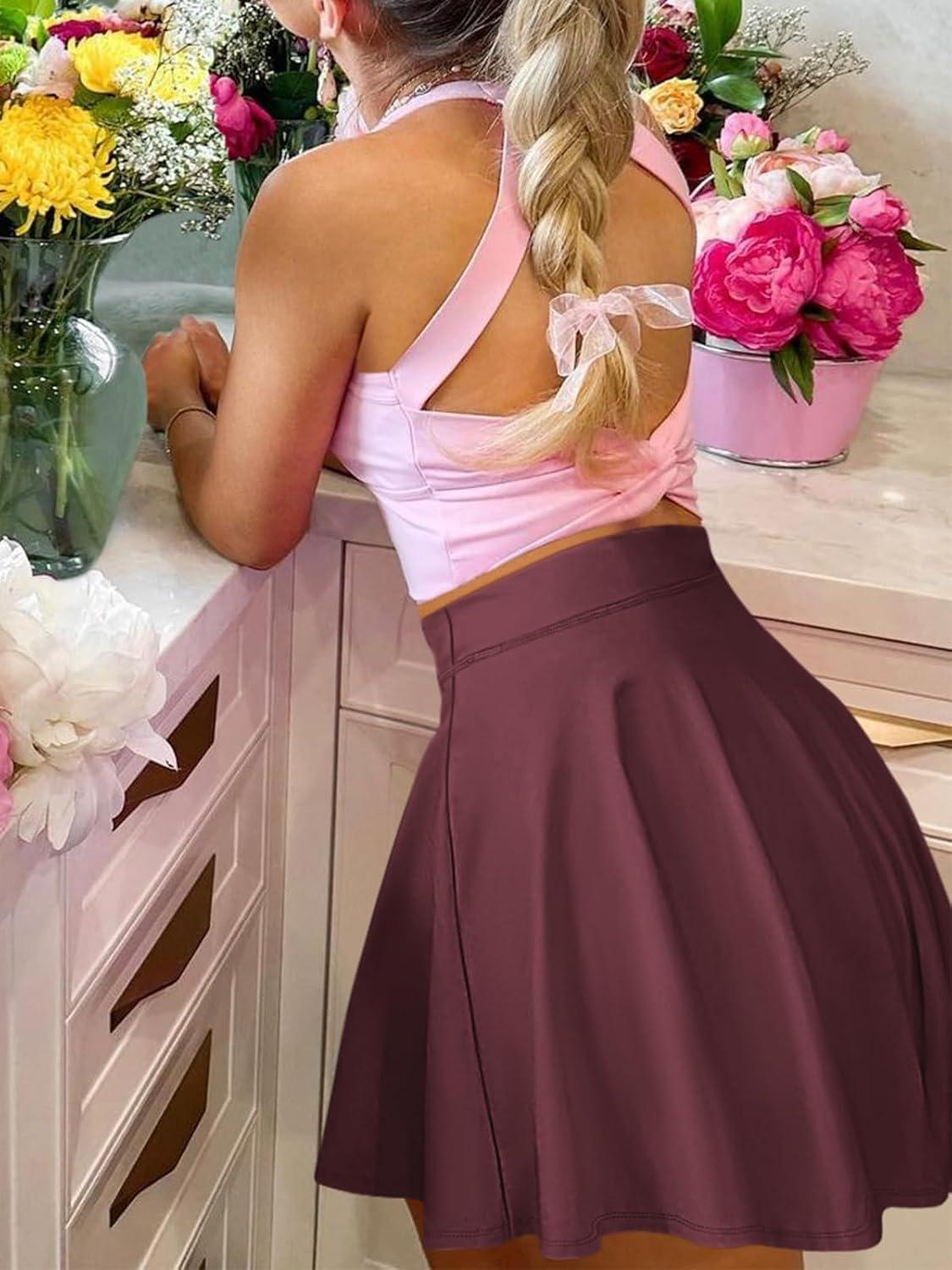 ANRABESS Women Knee Length Tennis Golf Skorts Skirts Summer High Waisted Athletic Skirt Casual Travel Built-in Shorts Clothes(Deep Red)