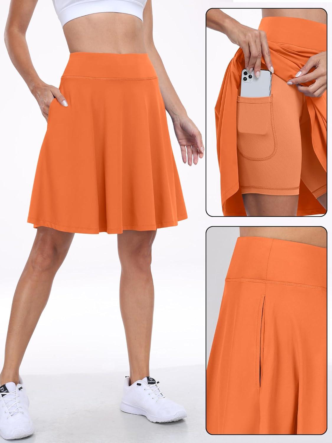 imageANRABESS Women Knee Length Tennis Golf Skorts Skirts Summer High Waisted Athletic Skirt Casual Travel Builtin Shorts ClothesOrange
