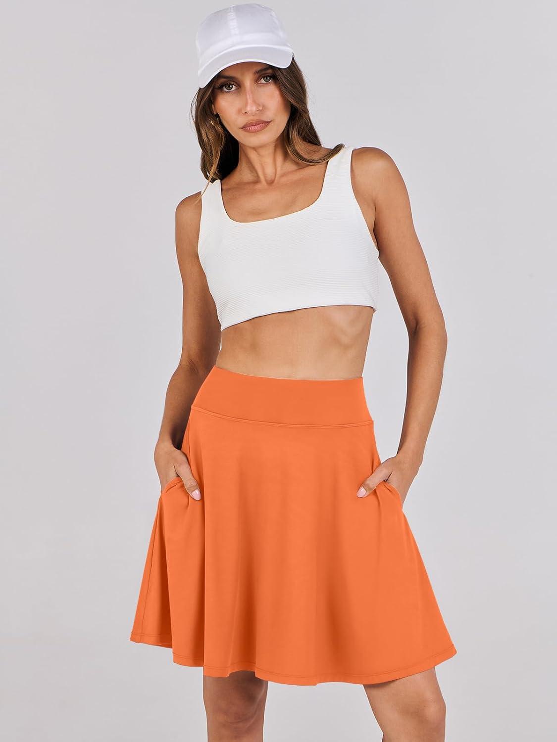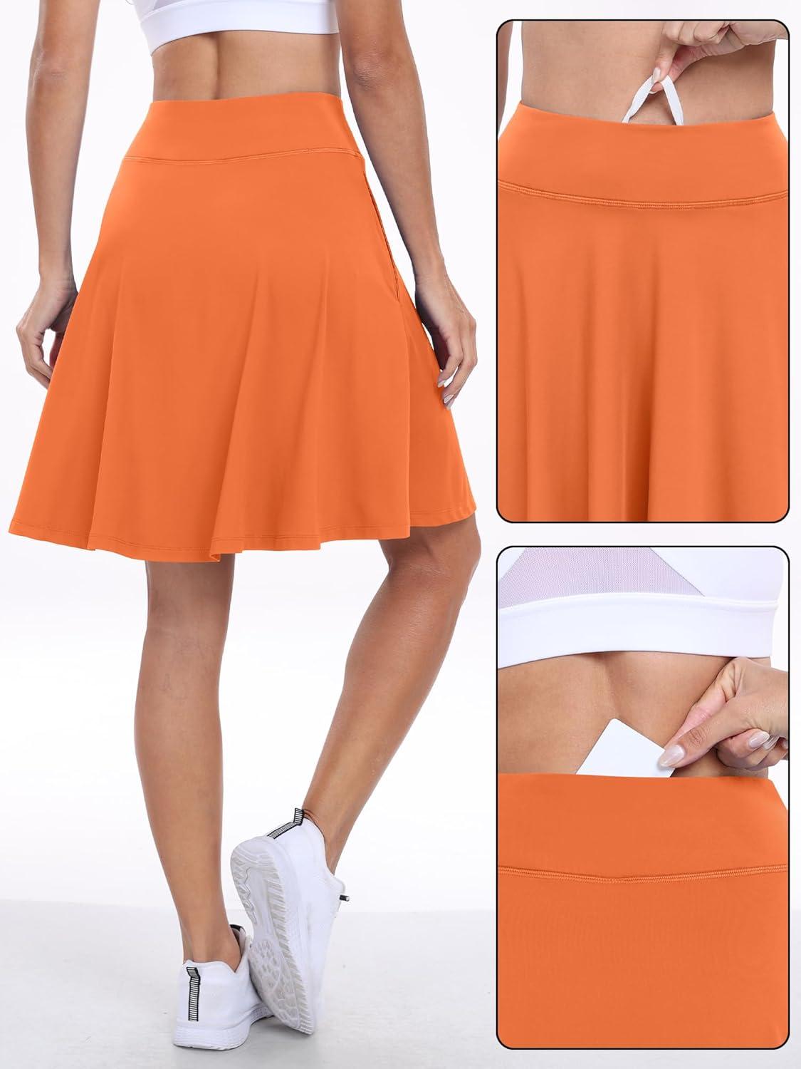 ANRABESS Women Knee Length Tennis Golf Skorts Skirts Summer High Waisted Athletic Skirt Casual Travel Built-in Shorts Clothes(Orange)