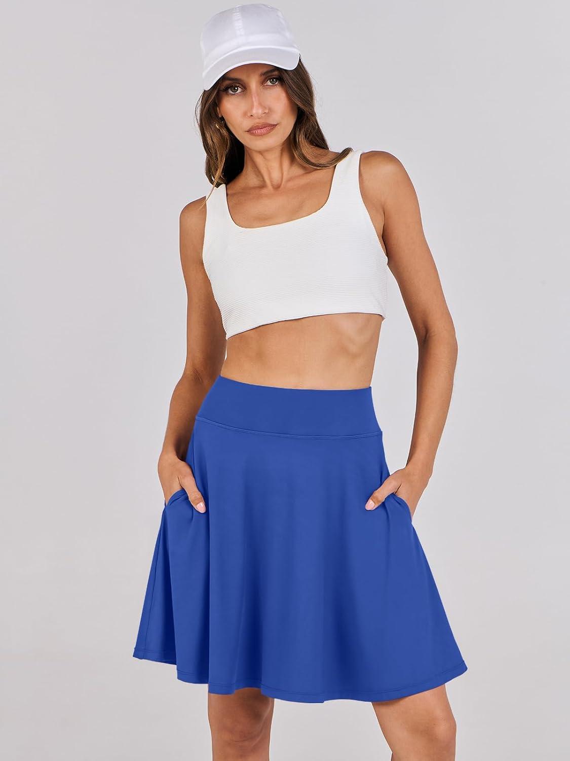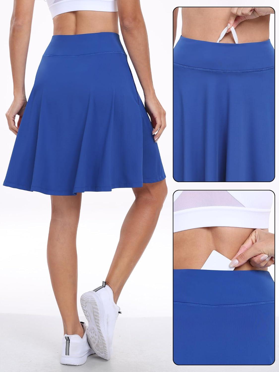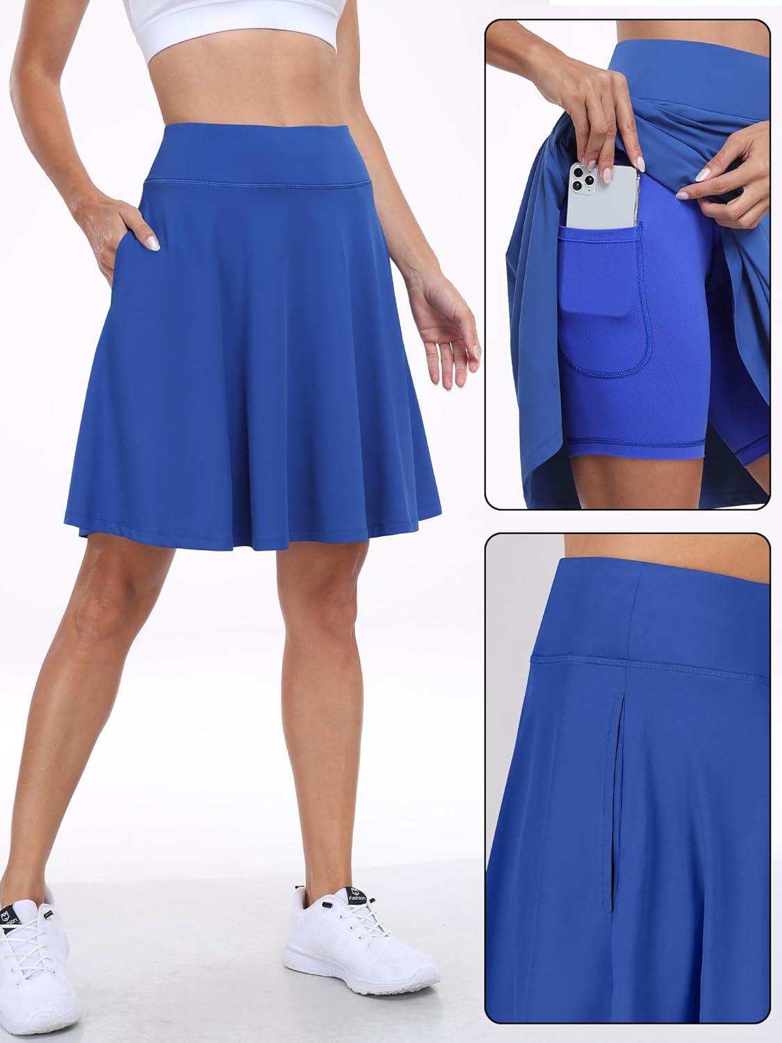 ANRABESS Women Knee Length Tennis Golf Skorts Skirts Summer High Waisted Athletic Skirt Casual Travel Built-in Shorts Clothes(Royal)