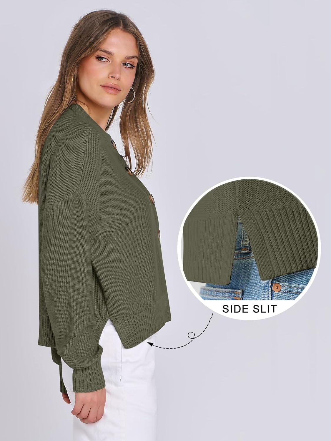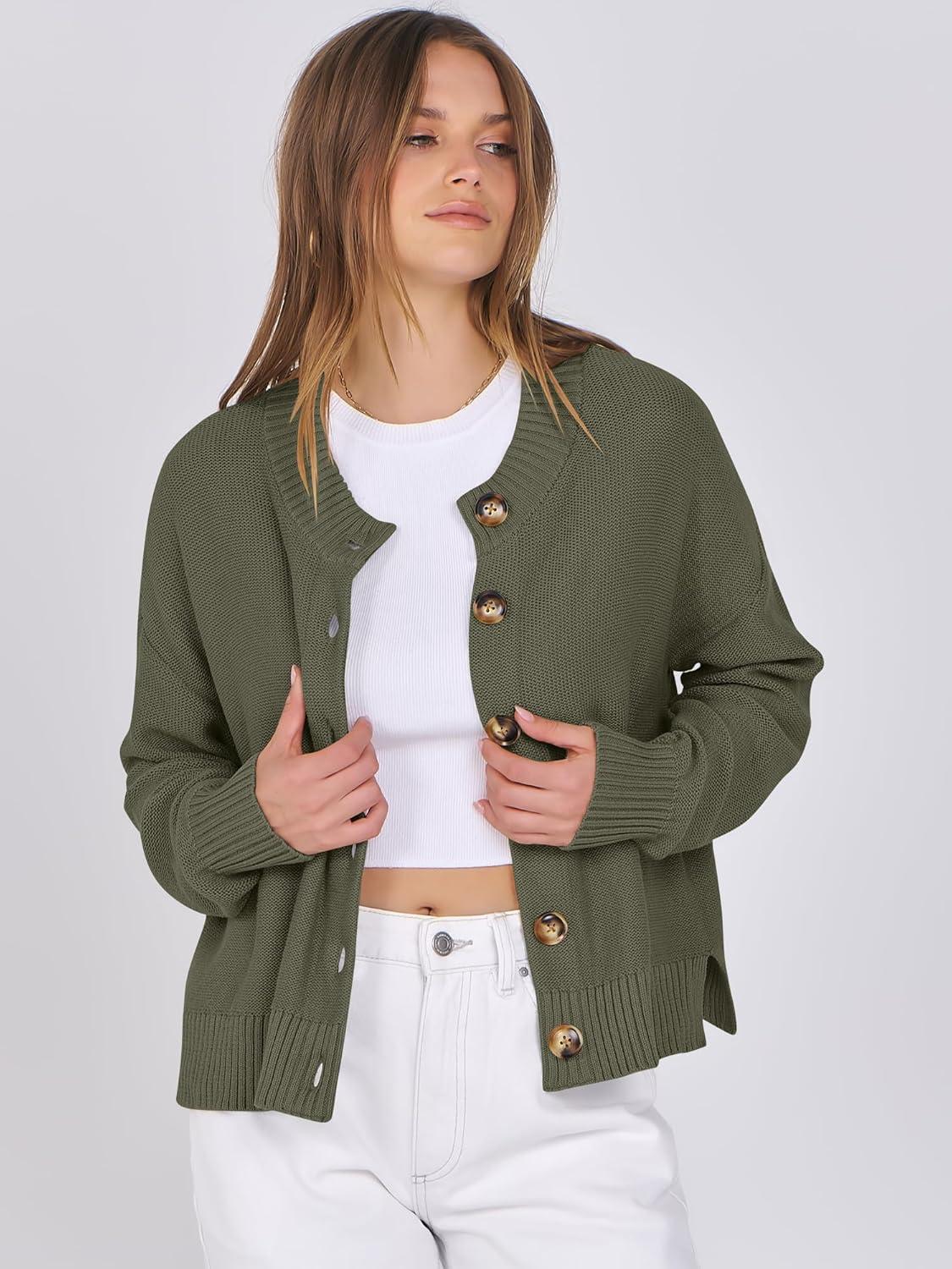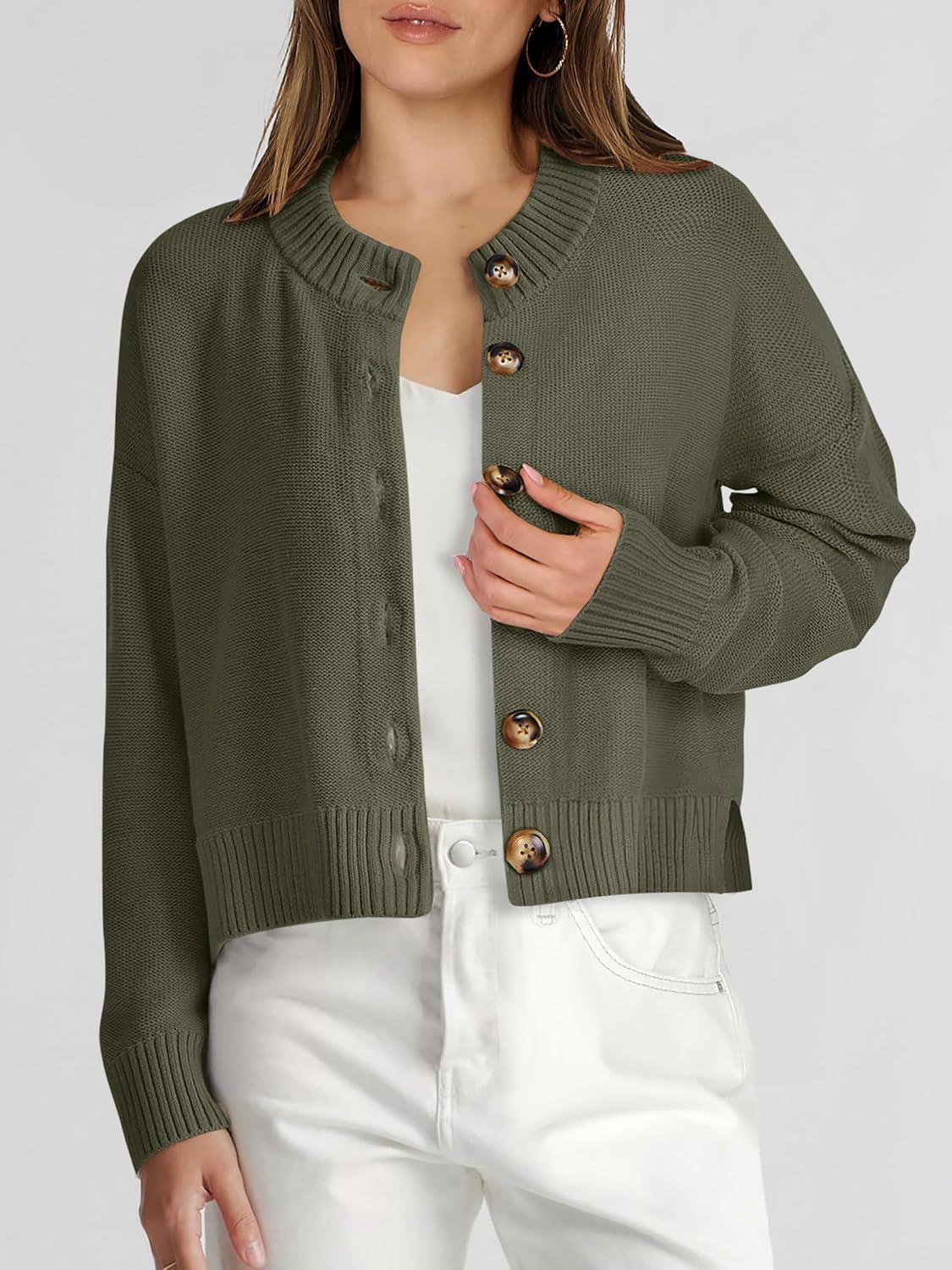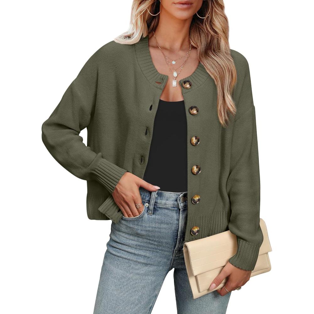 Don’t miss out on our limited-time offer: get a free {accessory} with your purchase of ANRABESS Women Knit Cardigans Sweater Open Front Button Down Long Sleeve Cropped Lady Jacket Outwear 2025 Fall Outfits(Army Green).