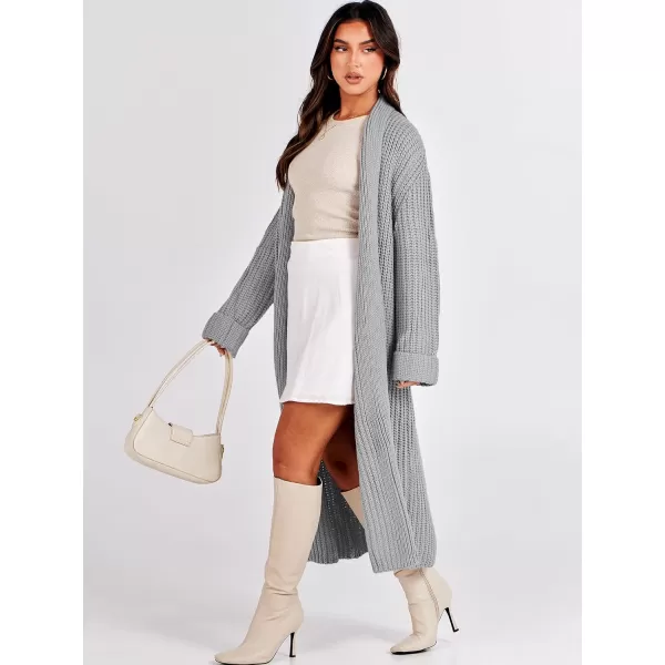 ANRABESS Women Knit Long Cardigan Long Sleeve Open Front Lapel Oversized Sweater Coat 2023 Fall Clothes(Grey)