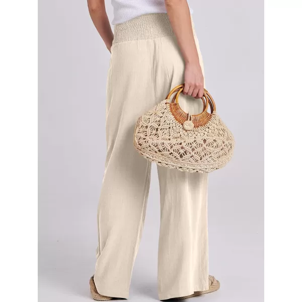 ANRABESS Women Linen Palazzo Pants Summer Boho Wide Leg High Waist Casual Lounge Pant Trousers with Pockets(Beige)