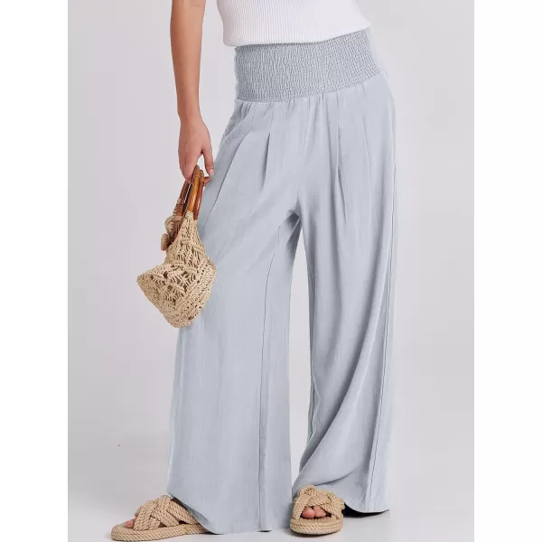 ANRABESS Women Linen Palazzo Pants Summer Boho Wide Leg High Waist Casual Lounge Pant Trousers with Pockets(Light Blue)