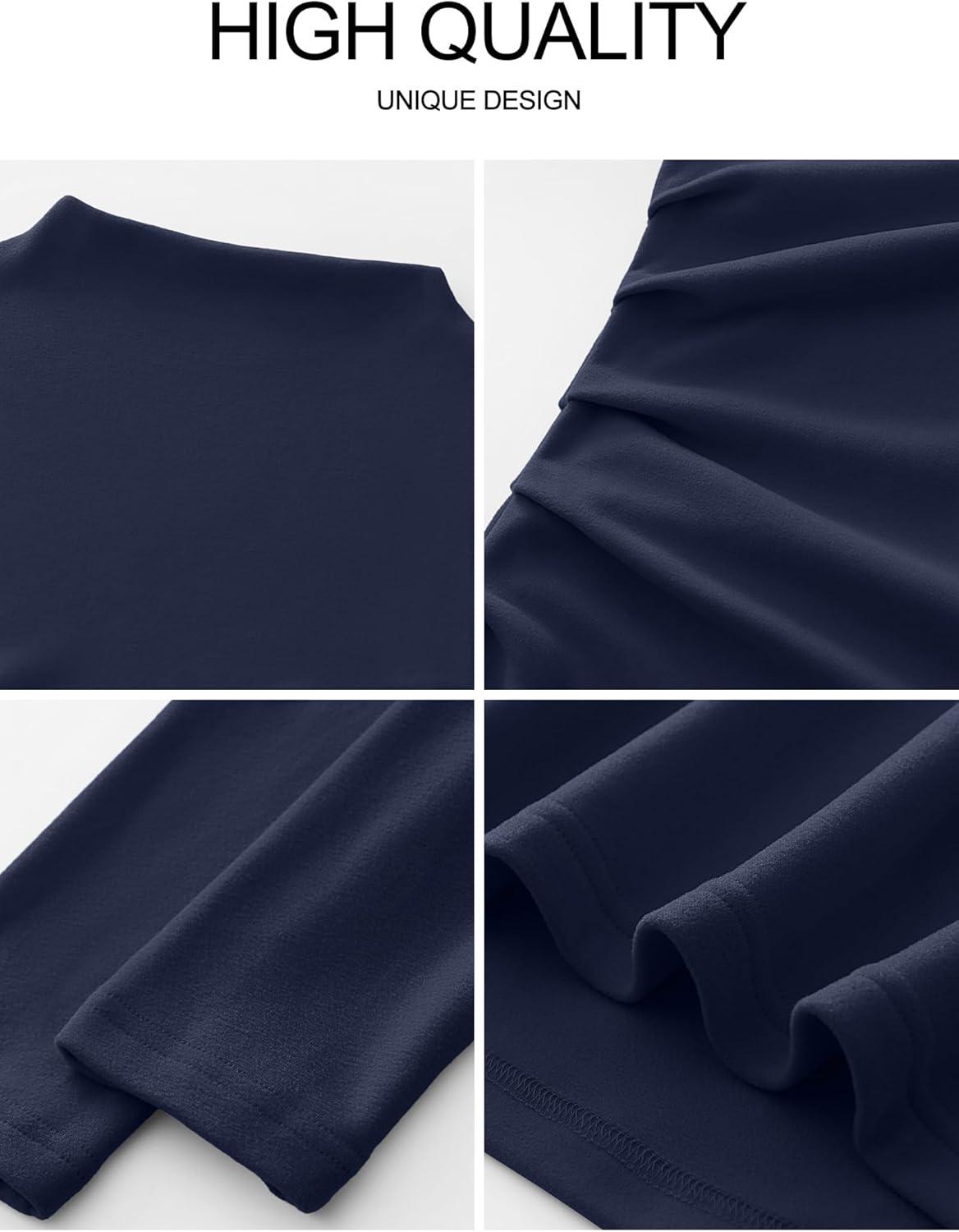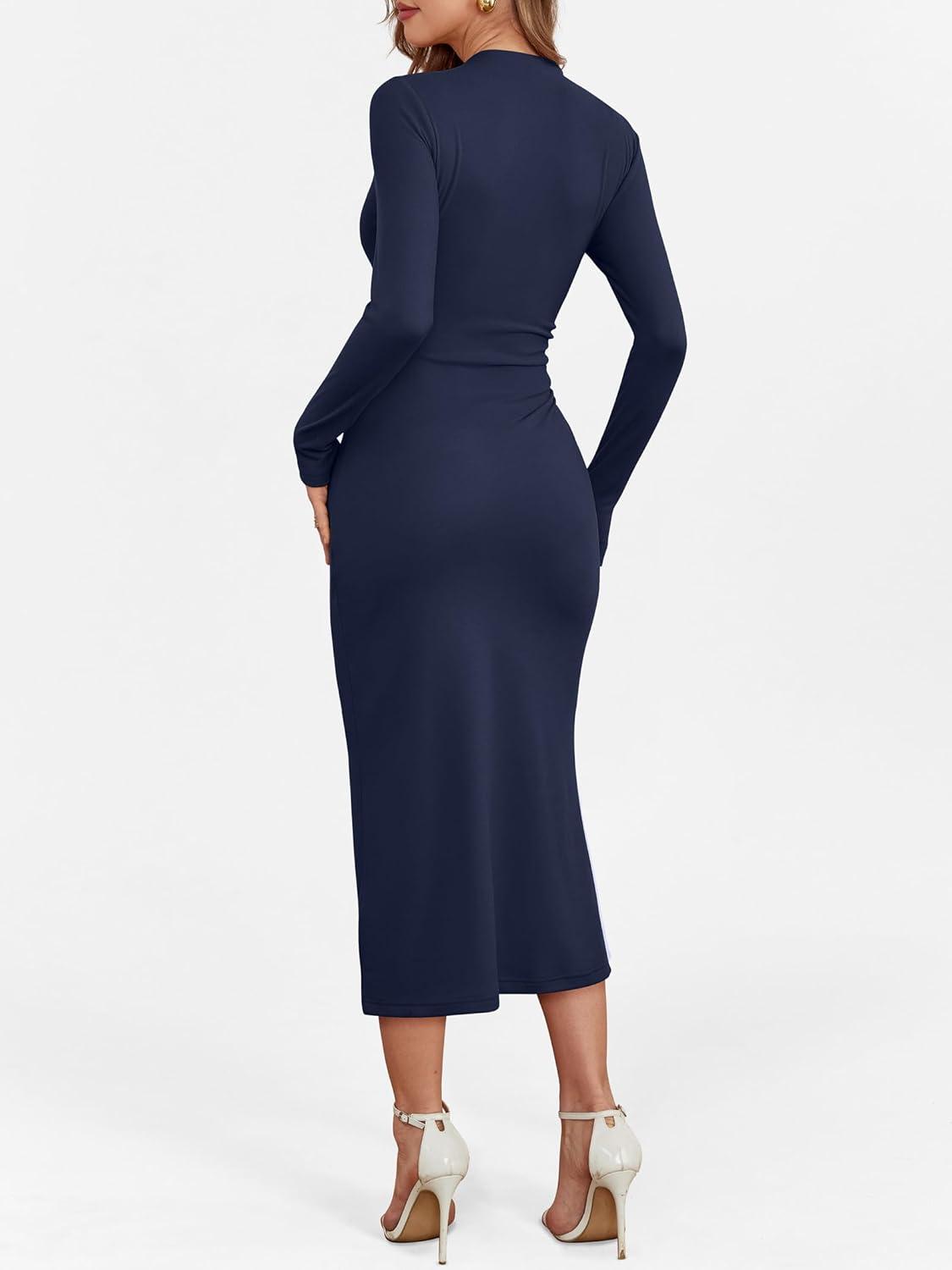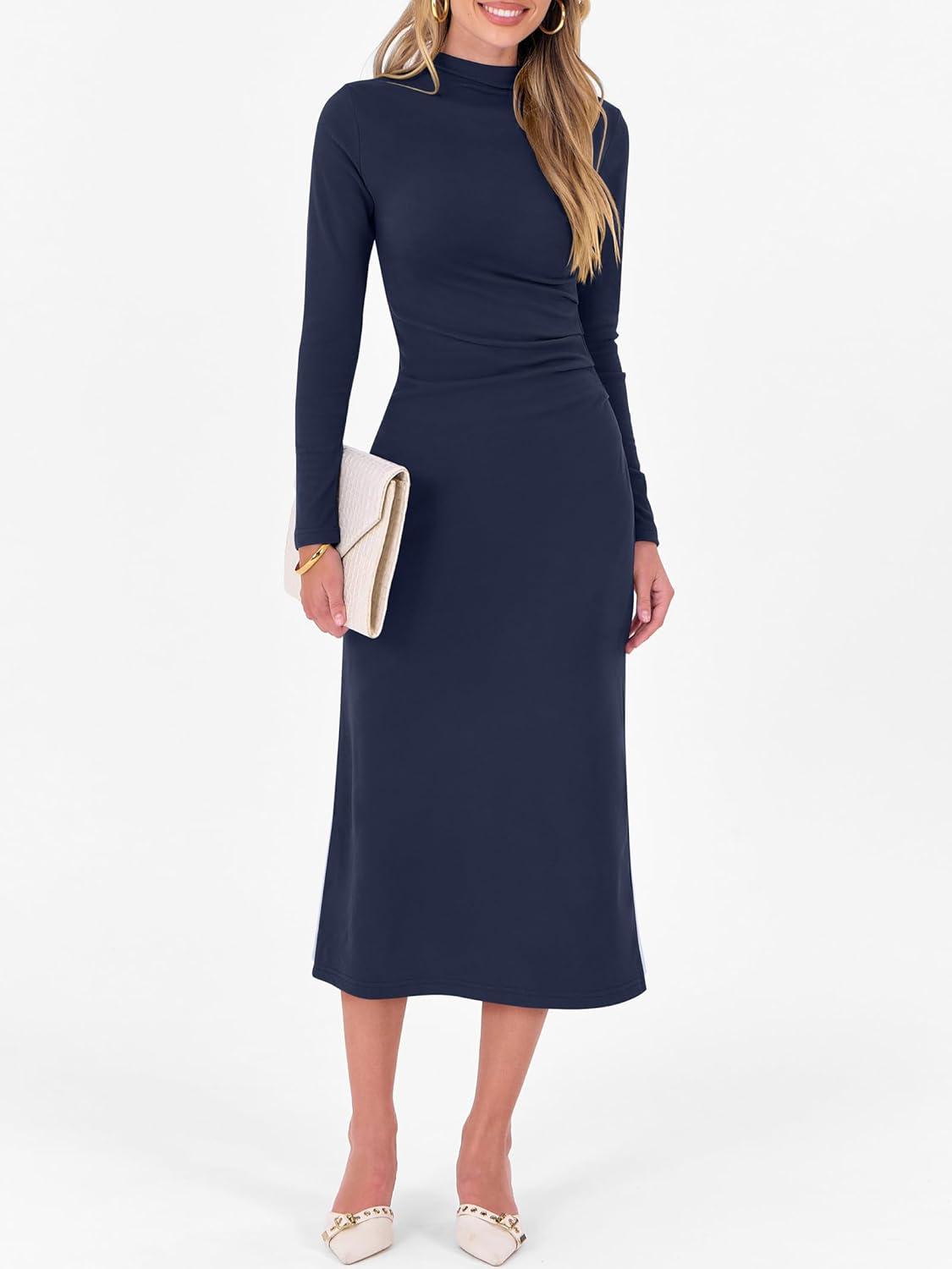 ANRABESS Women Long Sleeve Bodycon Dress Fall 2025 Mock Neck Formal Elegant Party Wedding Guest Cocktail Long Maxi Dresses(Navy Blue)
