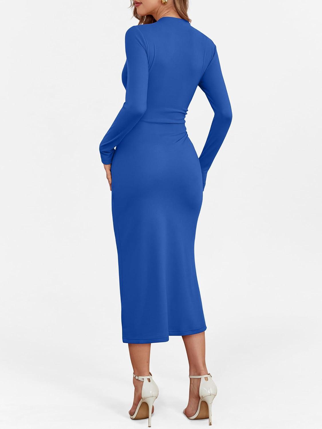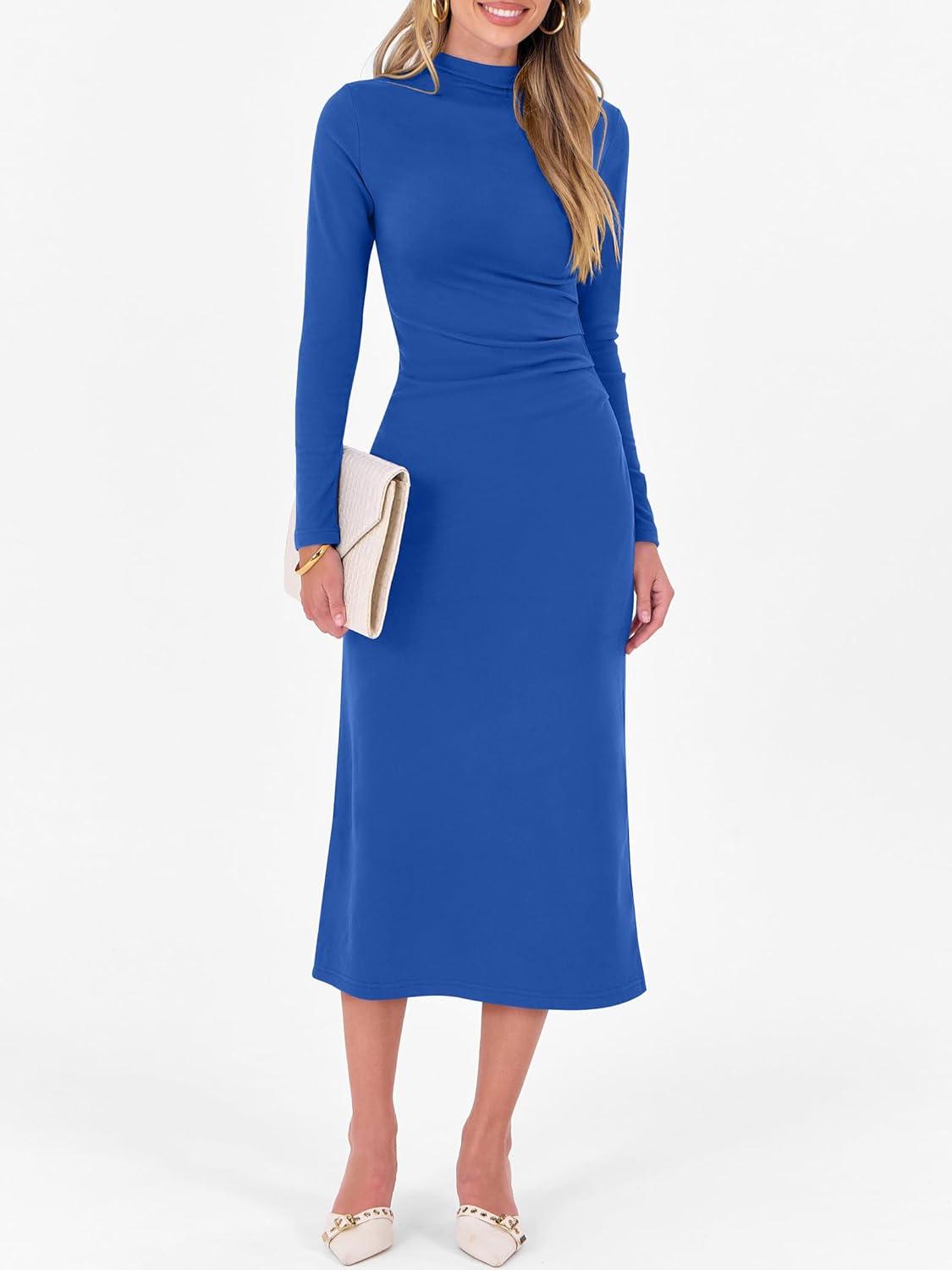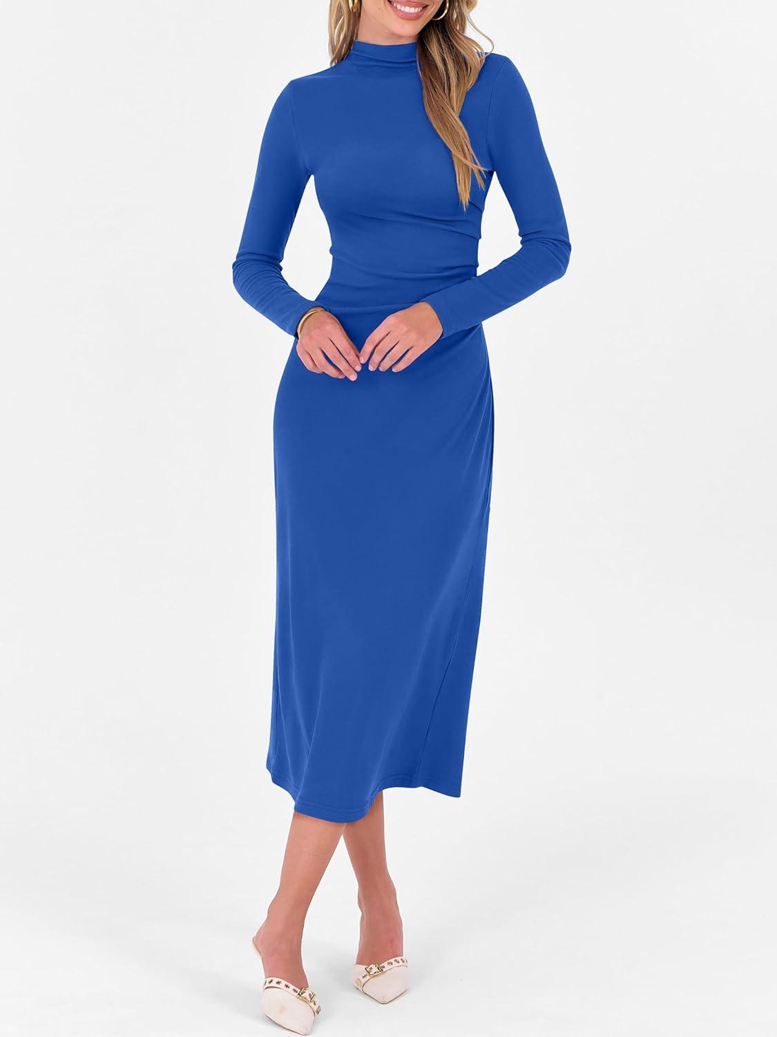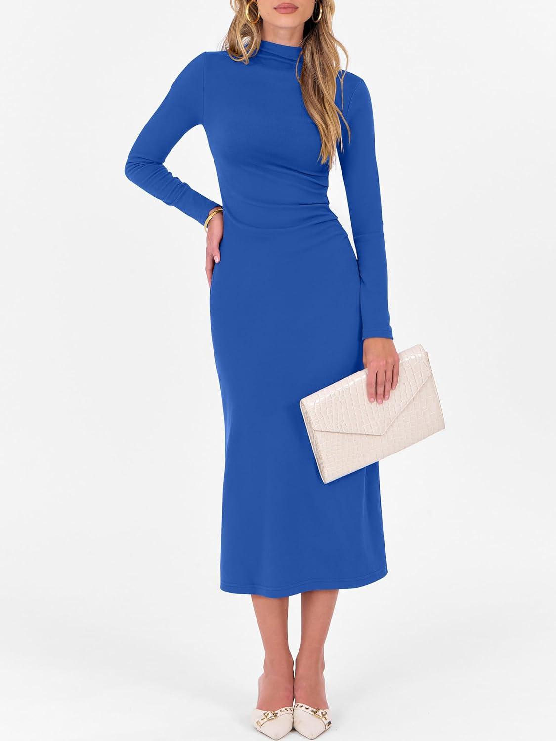 ANRABESS Women Long Sleeve Bodycon Dress Fall 2025 Mock Neck Formal Elegant Party Wedding Guest Cocktail Long Maxi Dresses(Royal Blue)