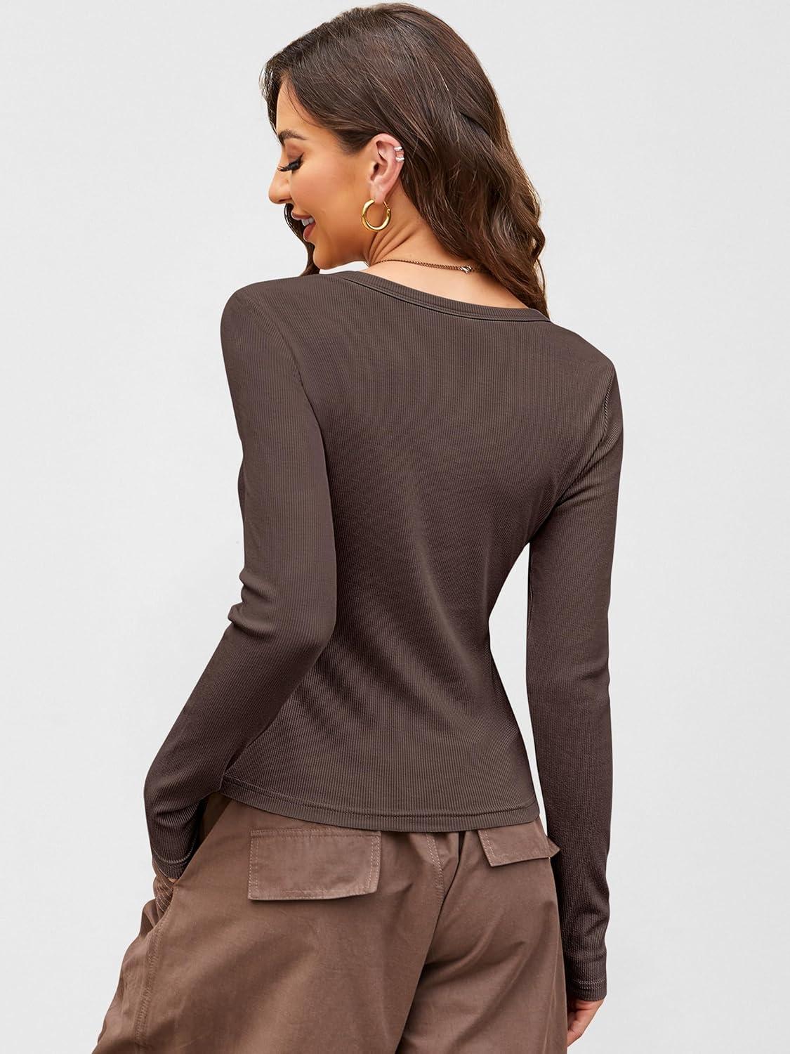 imageANRABESS Women Long Sleeve Button Down Shirts Ribbed Knit Slim Fitted Crop Tops 2025 Fall Y2K Dressy Casual Trendy OutfitsCoffee