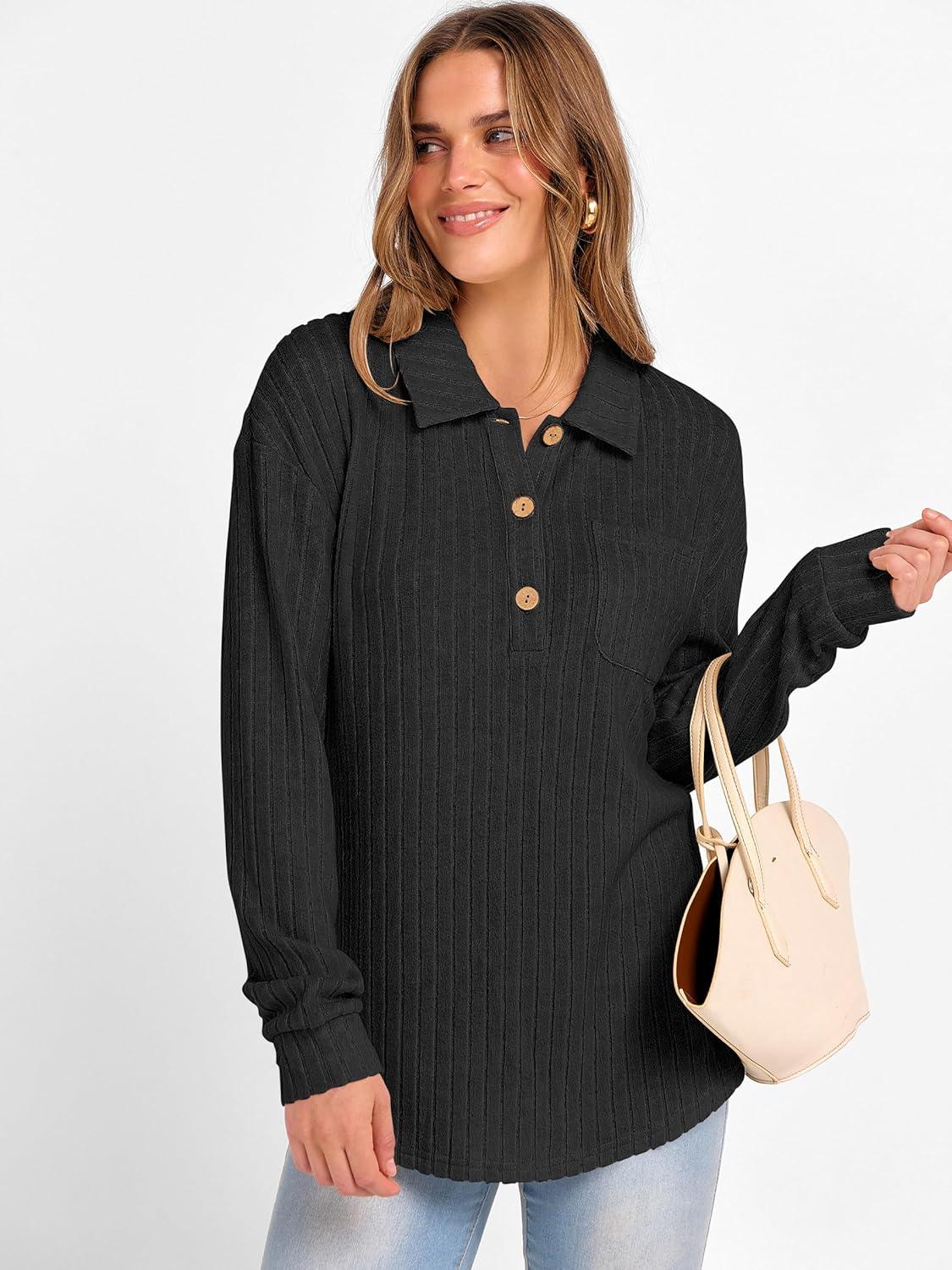Be the first to review “ANRABESS Women Long Sleeve Henley Shirts Ribbed Knit Lightweight Sweaters Business Casual Work Tops 2025 Fall Trendy Outfits(Black)”