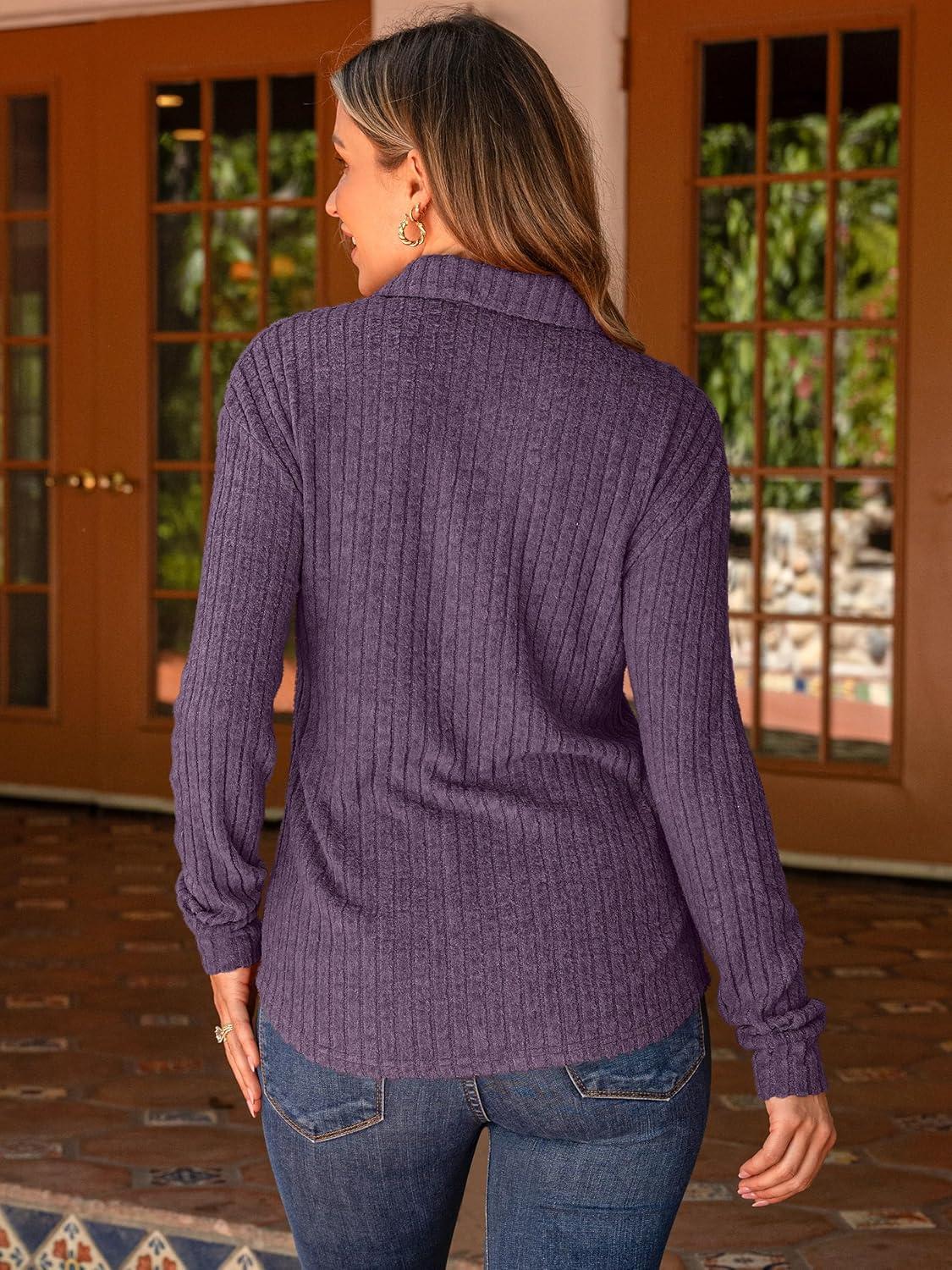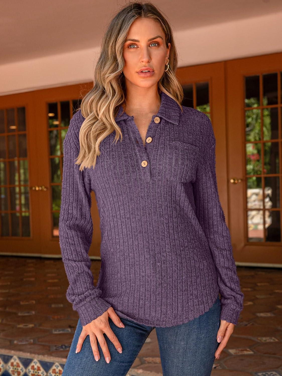 imageANRABESS Women Long Sleeve Henley Shirts Ribbed Knit Lightweight Sweaters Business Casual Work Tops 2025 Fall Trendy OutfitsPurple