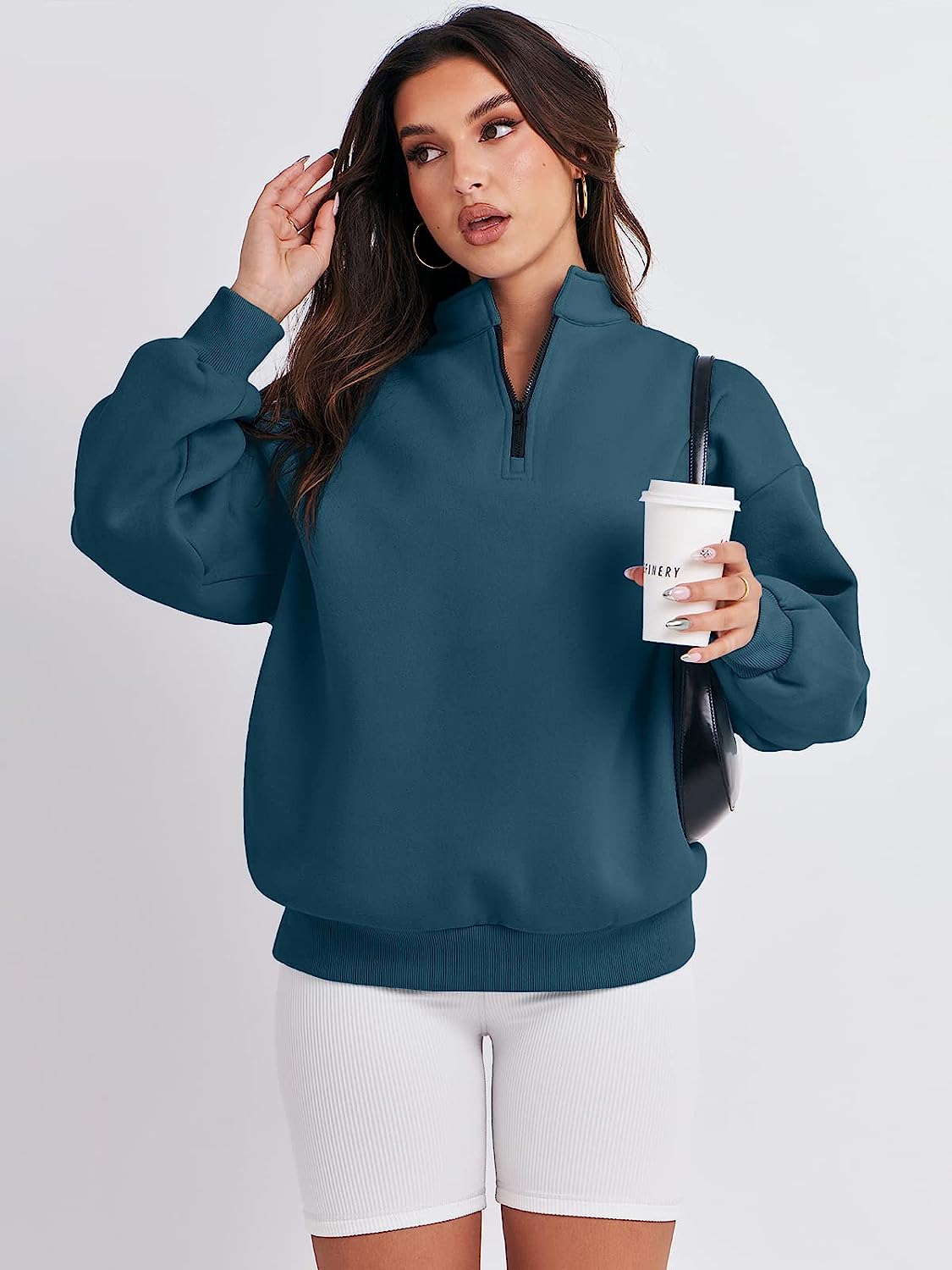 Design – Half zip up pullover women,oversized hoodie,quarter zipper sweatshirts,drop shoulder collar,1/4 zip longsleeve sweater,fall outfits for women,winter fashion clothes,aesthetic clothing,y2k fleece casual style.