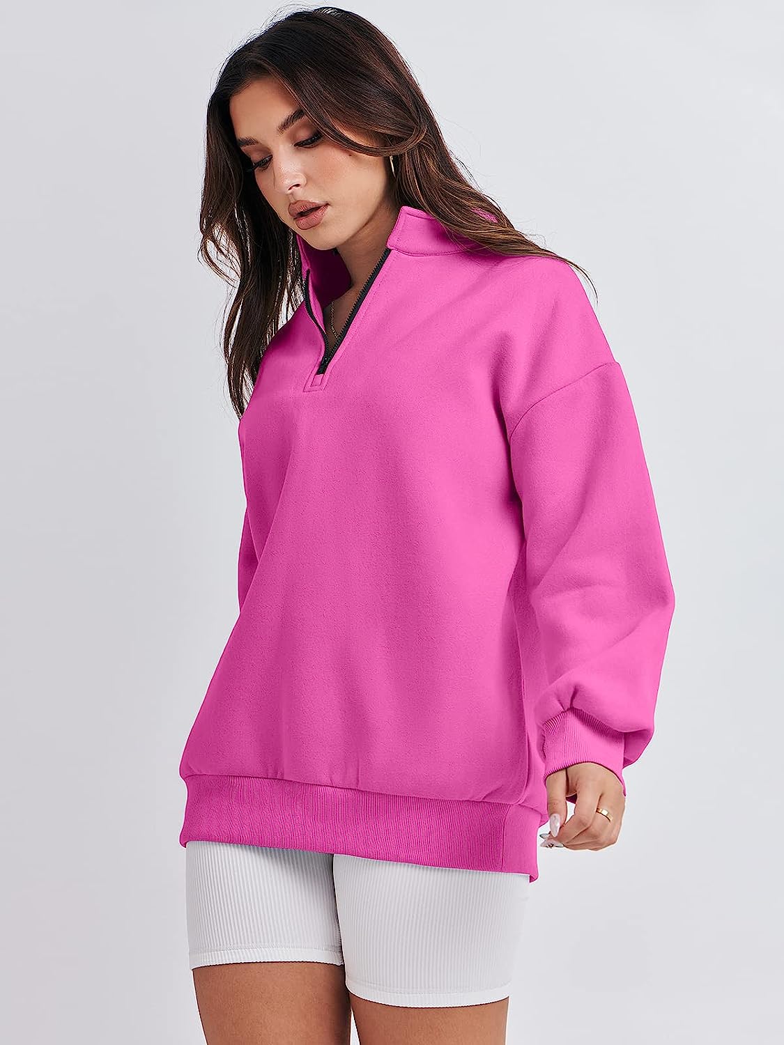 Design – Half zip up pullover women,oversized hoodie,quarter zipper sweatshirts,drop shoulder collar,1/4 zip longsleeve sweater,fall outfits for women,winter fashion clothes,aesthetic clothing,y2k fleece casual style.