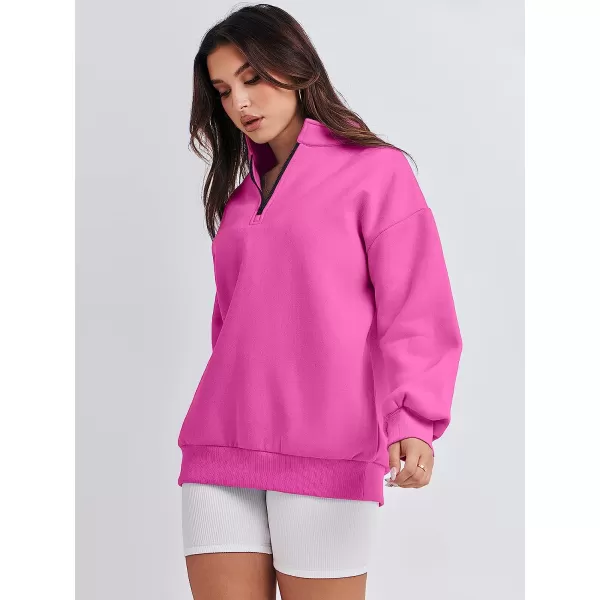imageANRABESS Women Long Sleeve Oversized Half Zip Pullover Sweatshirt Y2K Hoodie Sweater Trendy Fall ClothesPink