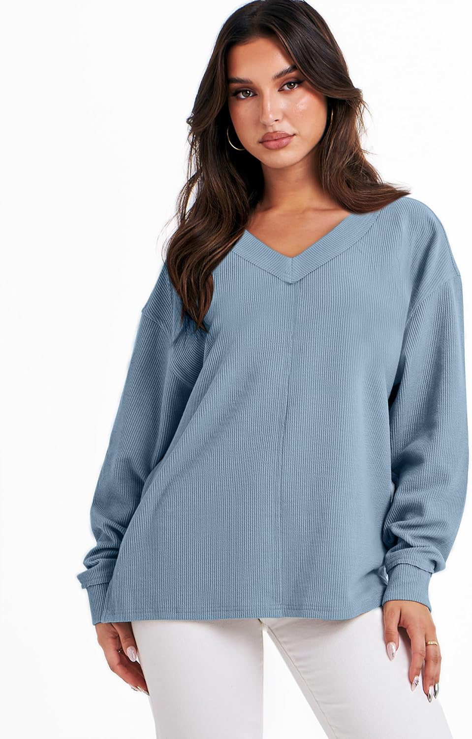 Be the first to review “ANRABESS Women Long Sleeve Shirt V Neck Off Shoulder Oversized Knit Pullover Sweatshirt Loose High Low Fall Tunic Tops(Blue)”