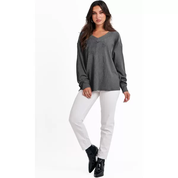 imageANRABESS Women Long Sleeve Shirt V Neck Off Shoulder Oversized Knit Pullover Sweatshirt Loose High Low Fall Tunic TopsDark Grey