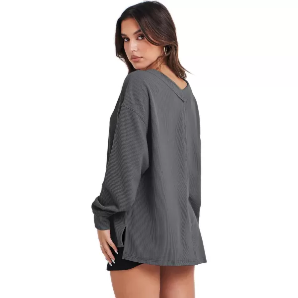 imageANRABESS Women Long Sleeve Shirt V Neck Off Shoulder Oversized Knit Pullover Sweatshirt Loose High Low Fall Tunic TopsDeep Grey
