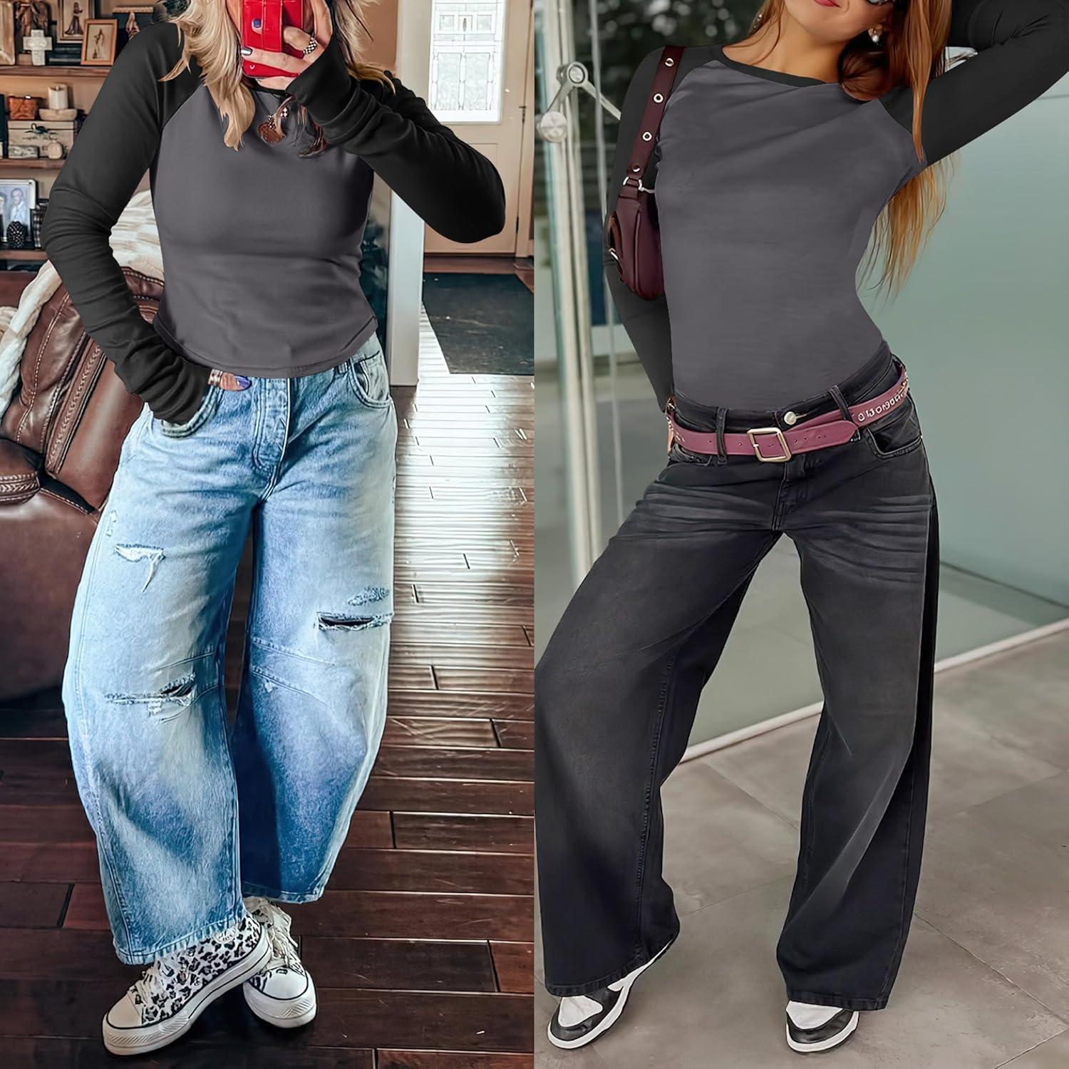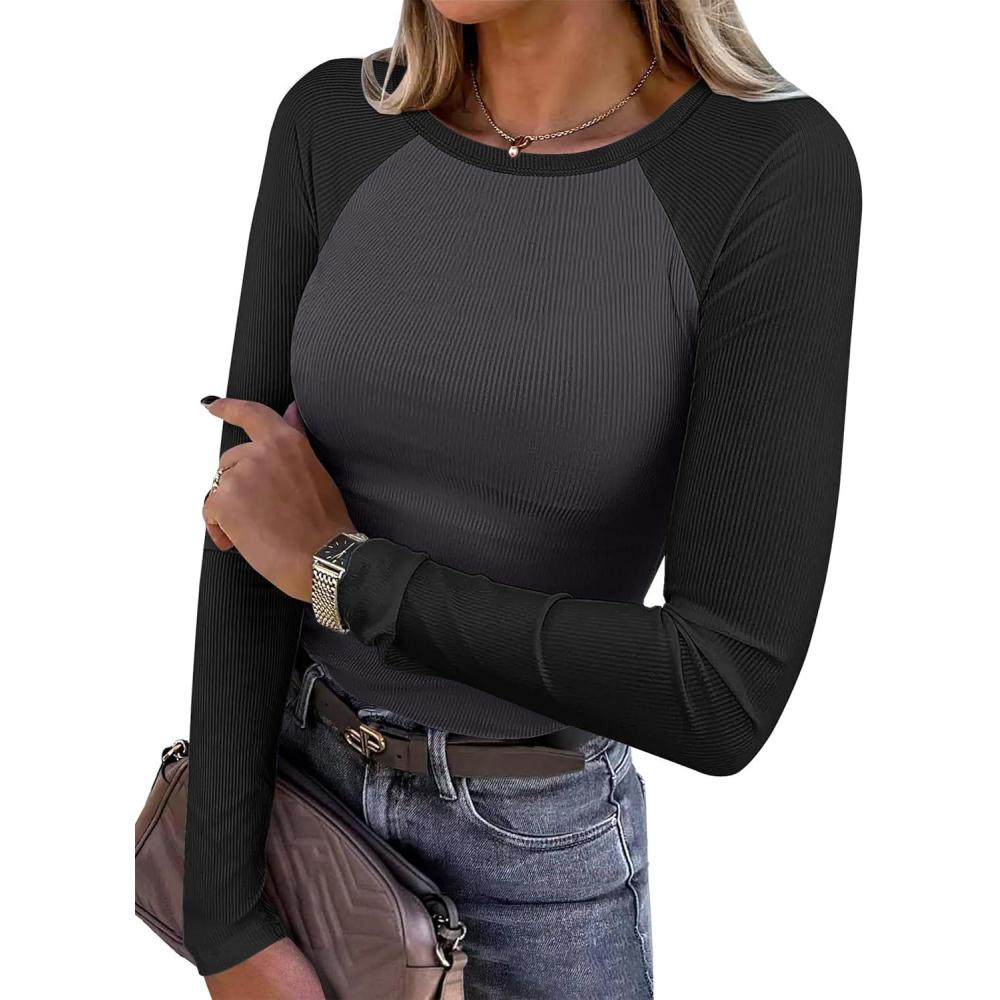 Be the first to review “ANRABESS Women Long Sleeve Shirts Ribbed Knit Slim Fitted Tops Casual Basic Tight Tee T-Shirts 2025 Fall Underscrubs Layer(Grey Black)”