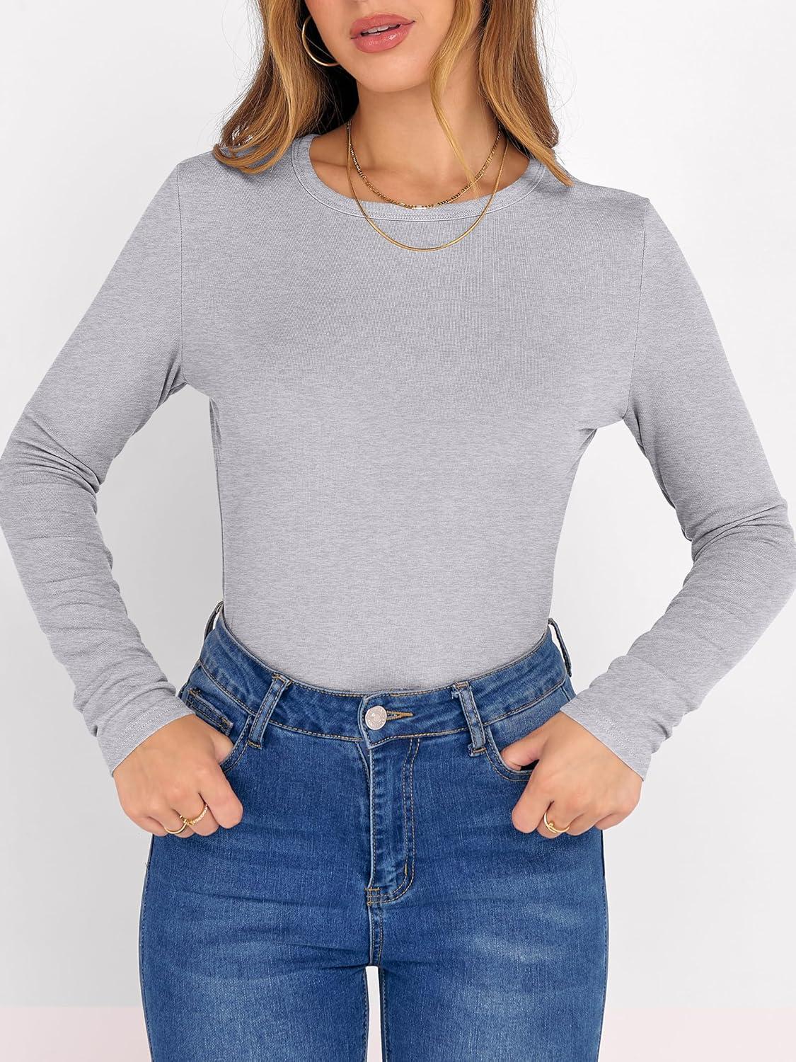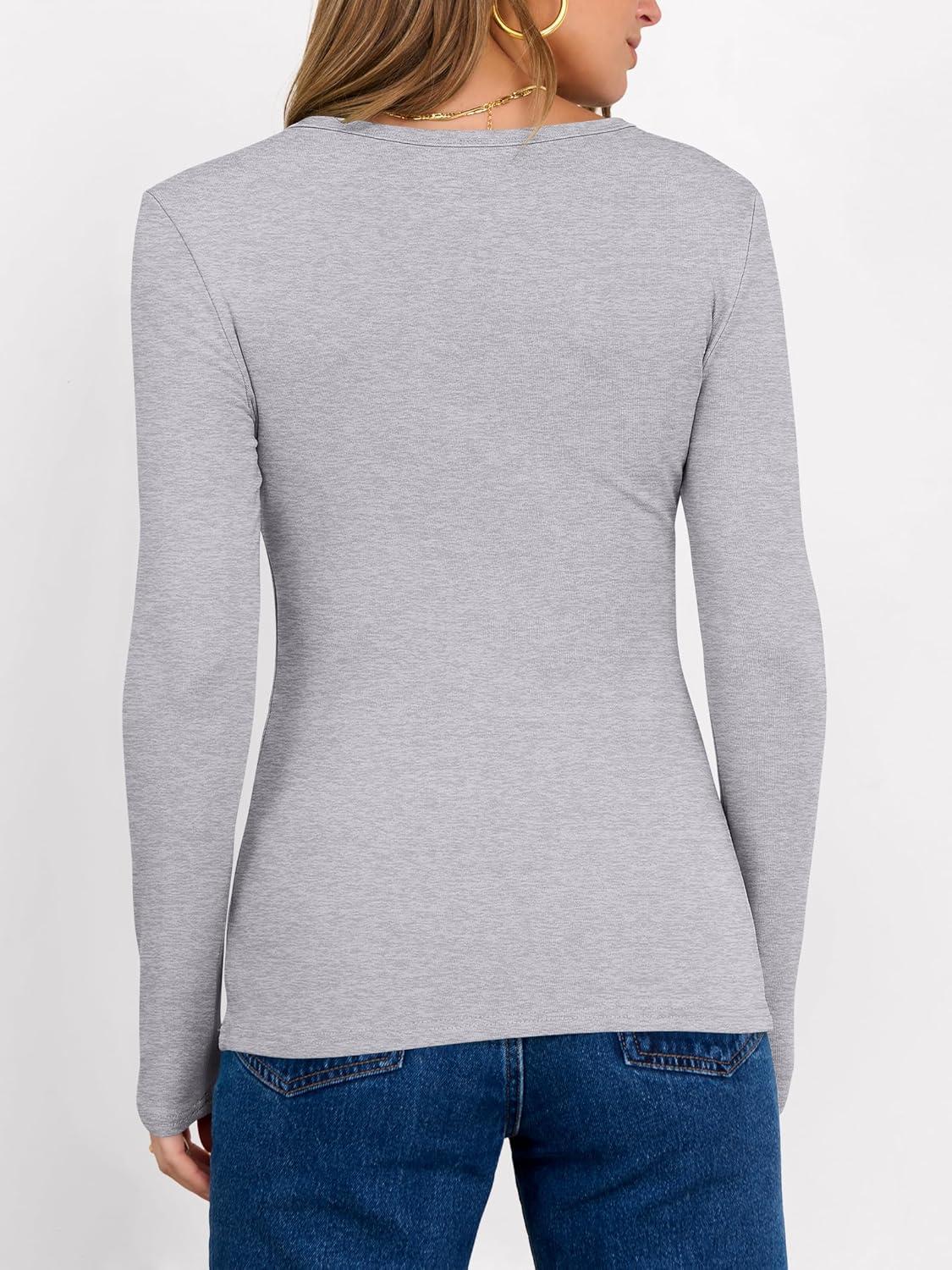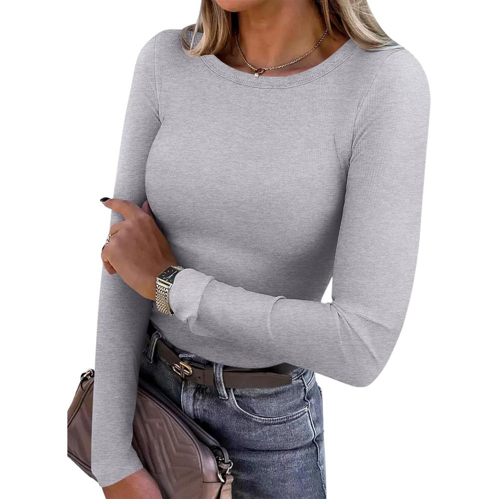 ANRABESS Women Long Sleeve Thermal Shirt Fleece Tops 2025 Fall Winter Crew Neck Casual Base Layer T-Shirts Warm Undershirts(Grey)