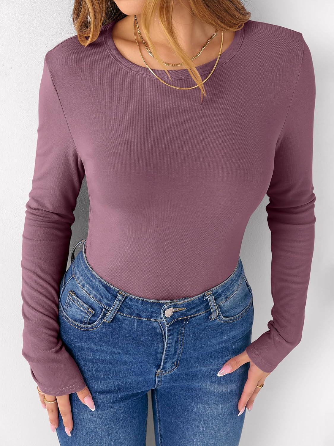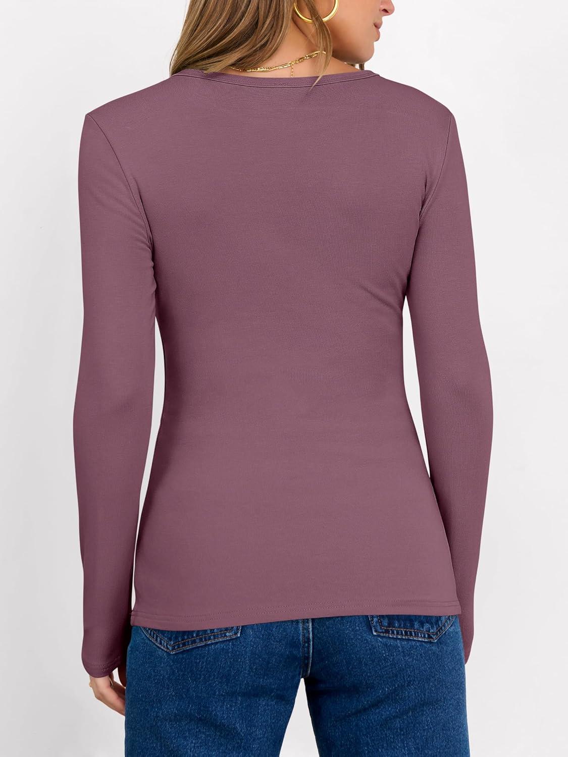 ANRABESS Women Long Sleeve Thermal Shirt Fleece Tops 2025 Fall Winter Crew Neck Casual Base Layer T-Shirts Warm Undershirts(Mauve)