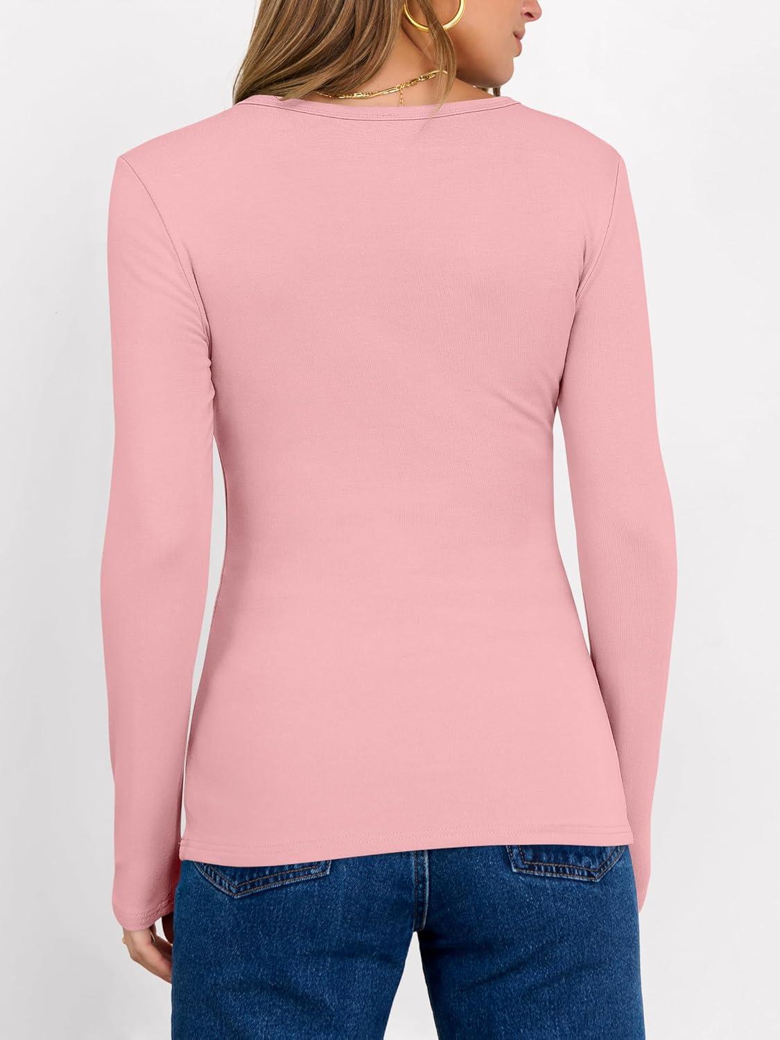 ANRABESS Women Long Sleeve Thermal Shirt Fleece Tops 2025 Fall Winter Crew Neck Casual Base Layer T-Shirts Warm Undershirts(Pink)