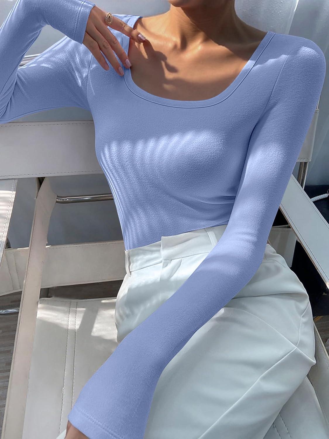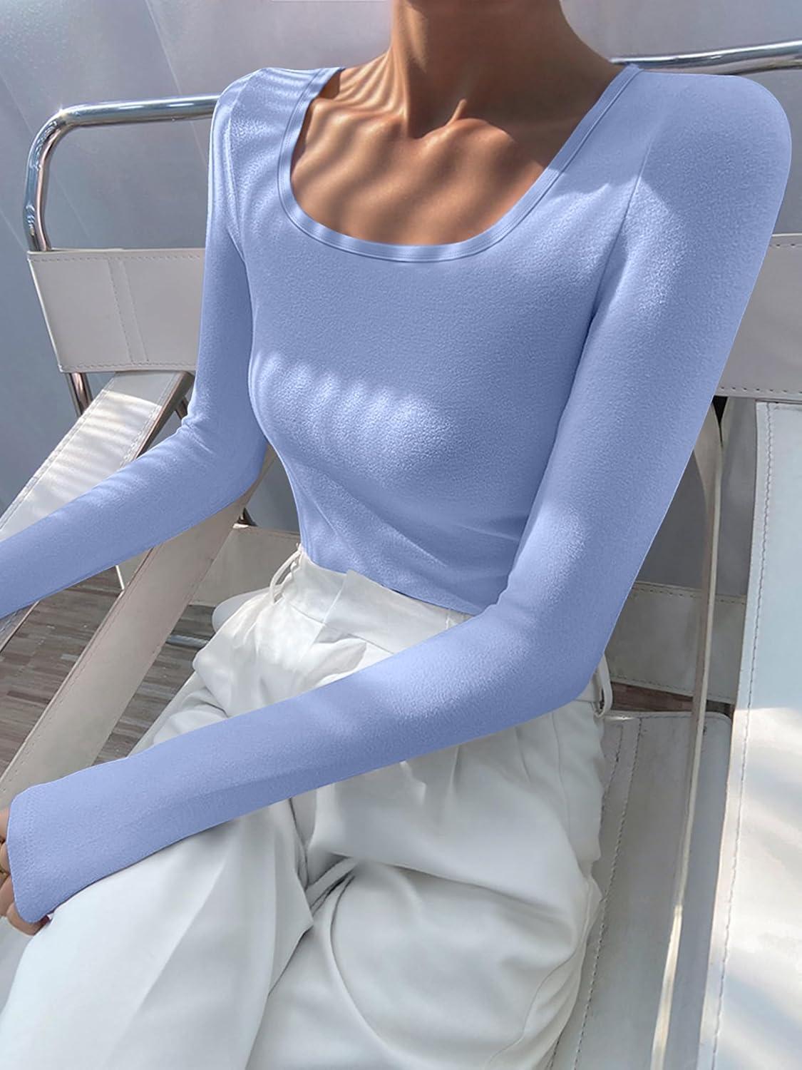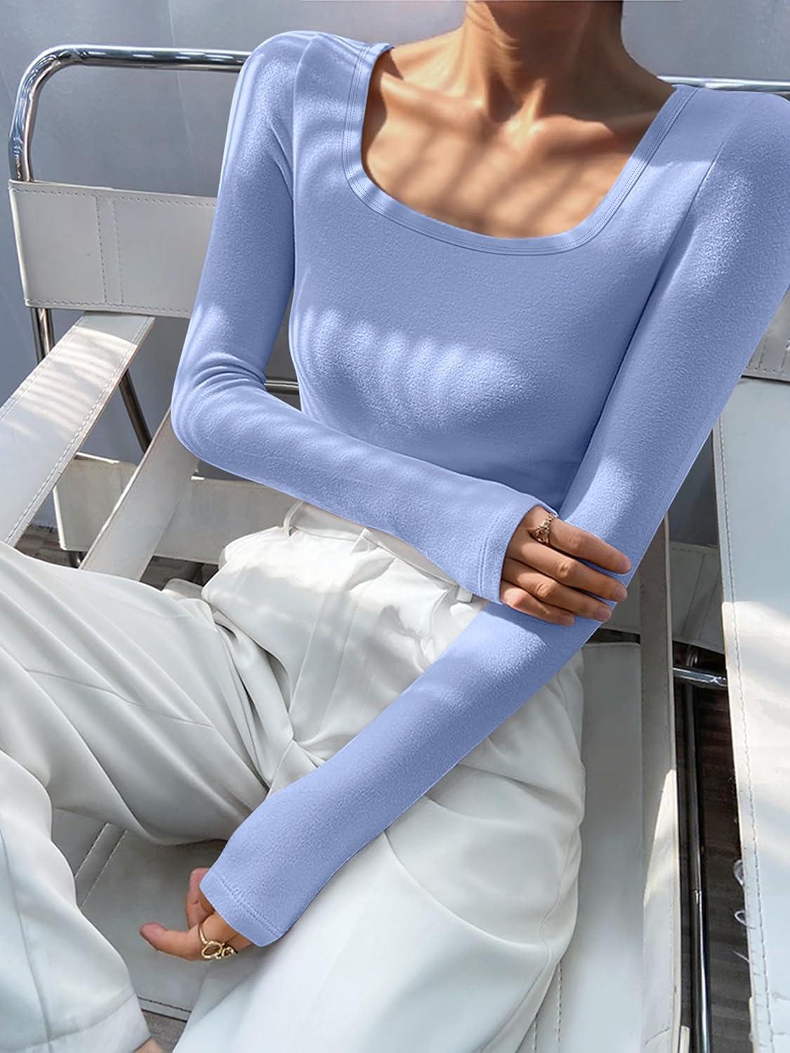 ANRABESS Women Long Sleeve Thermal Top Scoop Neck Slim Fit Fleece Shirts Basic Tee Casual 2025 Fall Winter Warm Undershirts(Blue)