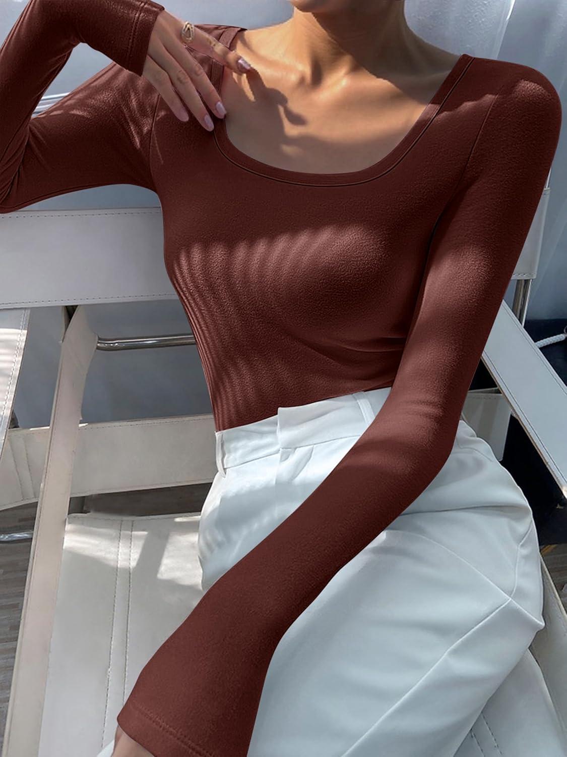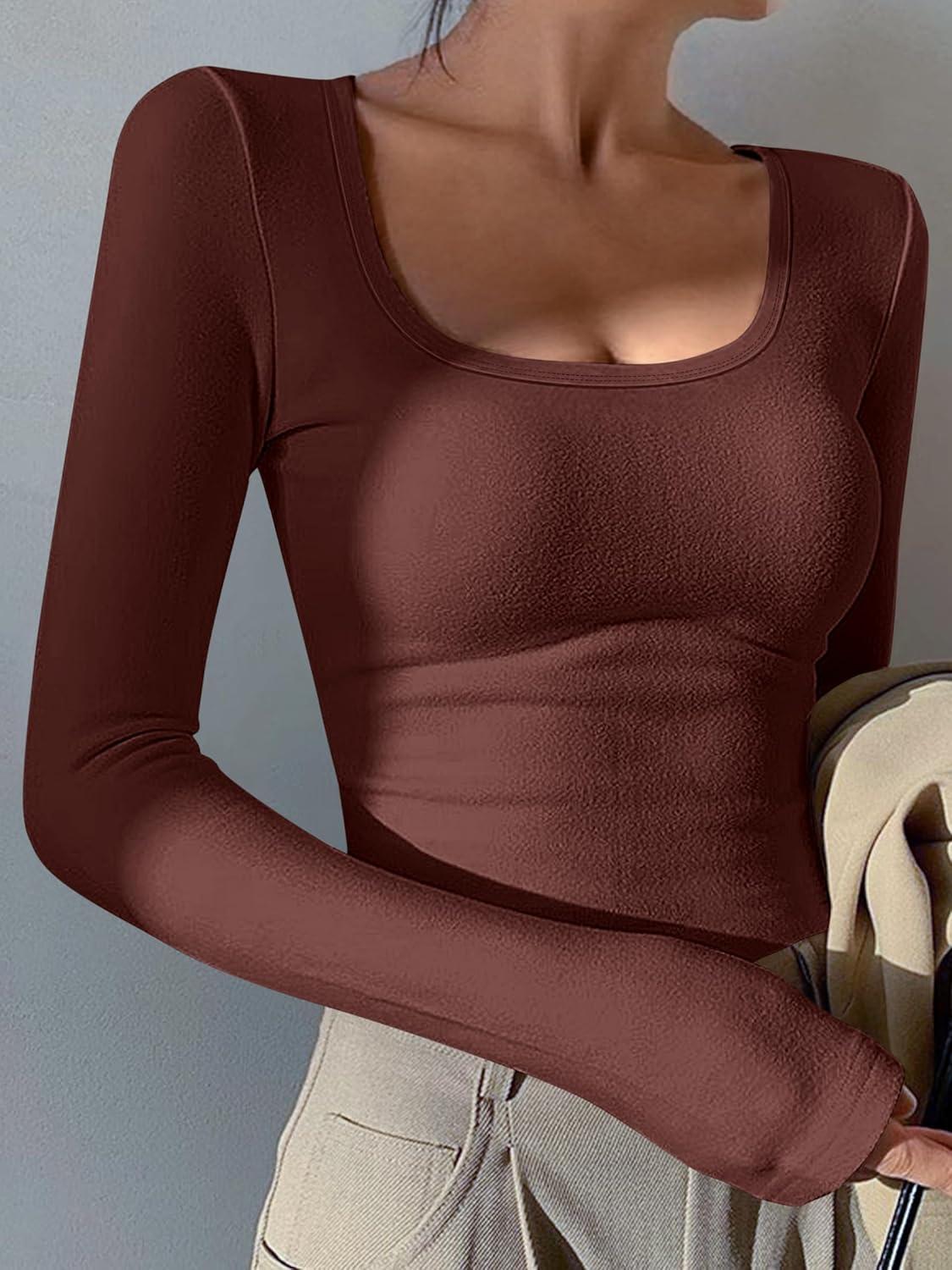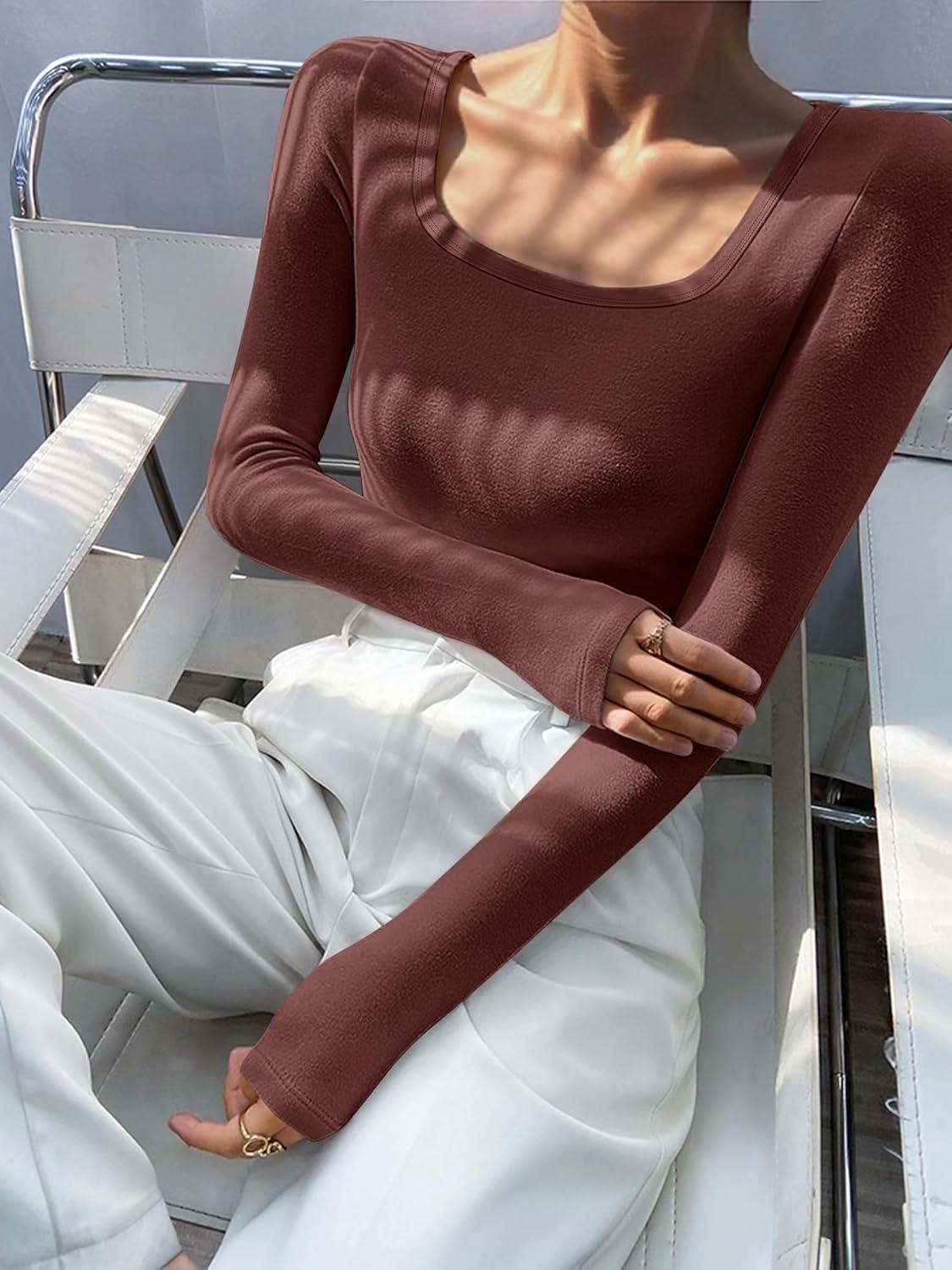 imageANRABESS Women Long Sleeve Thermal Top Scoop Neck Slim Fit Fleece Shirts Basic Tee Casual 2025 Fall Winter Warm UndershirtsRed Brown