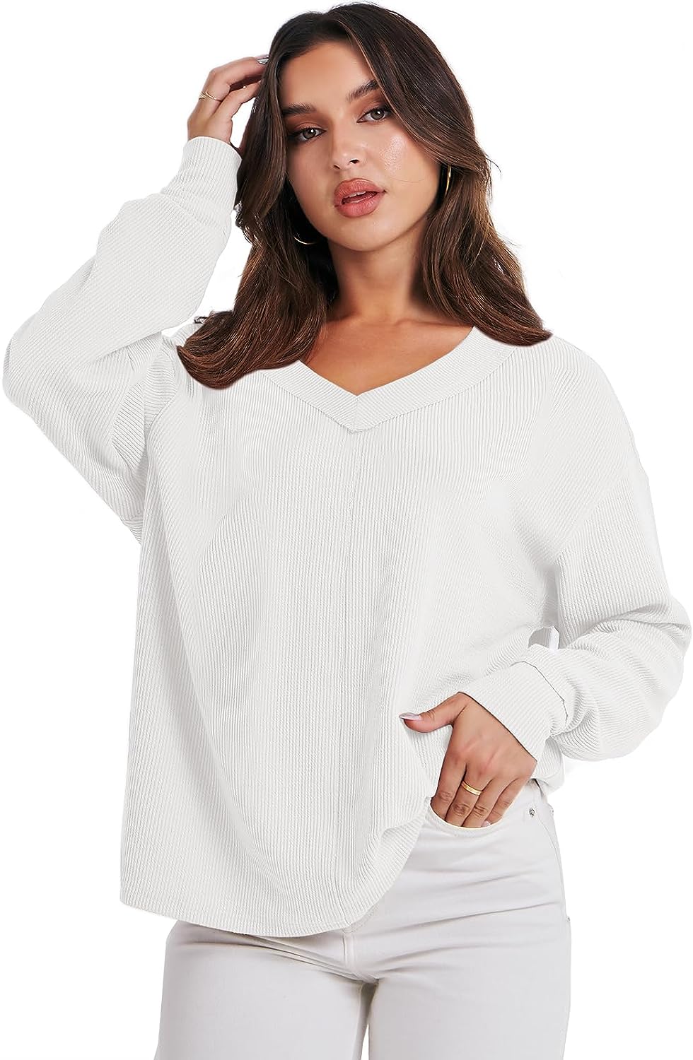 Be the first to review “ANRABESS Women Long Sleeve V Neck Off Shoulder Oversized Knit Pullover Sweatshirt Loose Fit High Low Tunic Tops(White)”