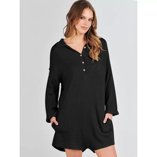 ANRABESS Women One Piece Pajamas Sweater Rompers 2024 Spring Around House Lounging Outfits Long SLeeve Knit Jumpsuits(Black)