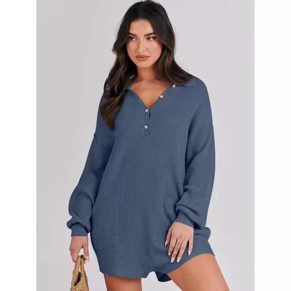 ANRABESS Women One Piece Pajamas Sweater Rompers 2024 Spring Around House Lounging Outfits Long SLeeve Knit Jumpsuits(Dusty Blue)