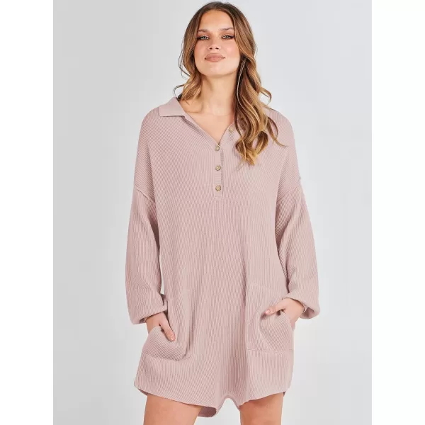 ANRABESS Women One Piece Pajamas Sweater Rompers 2024 Spring Around House Lounging Outfits Long SLeeve Knit Jumpsuits(Pink)