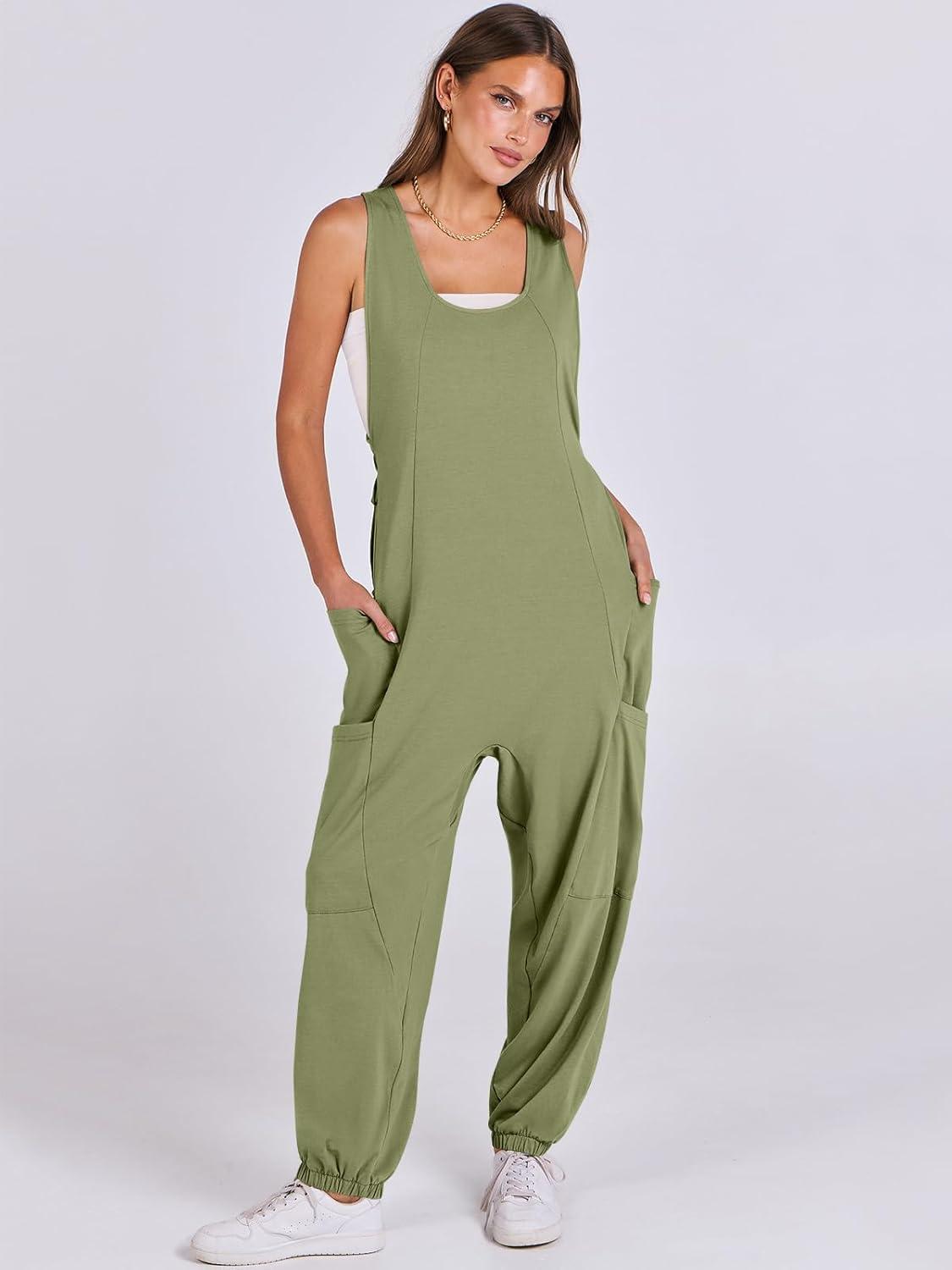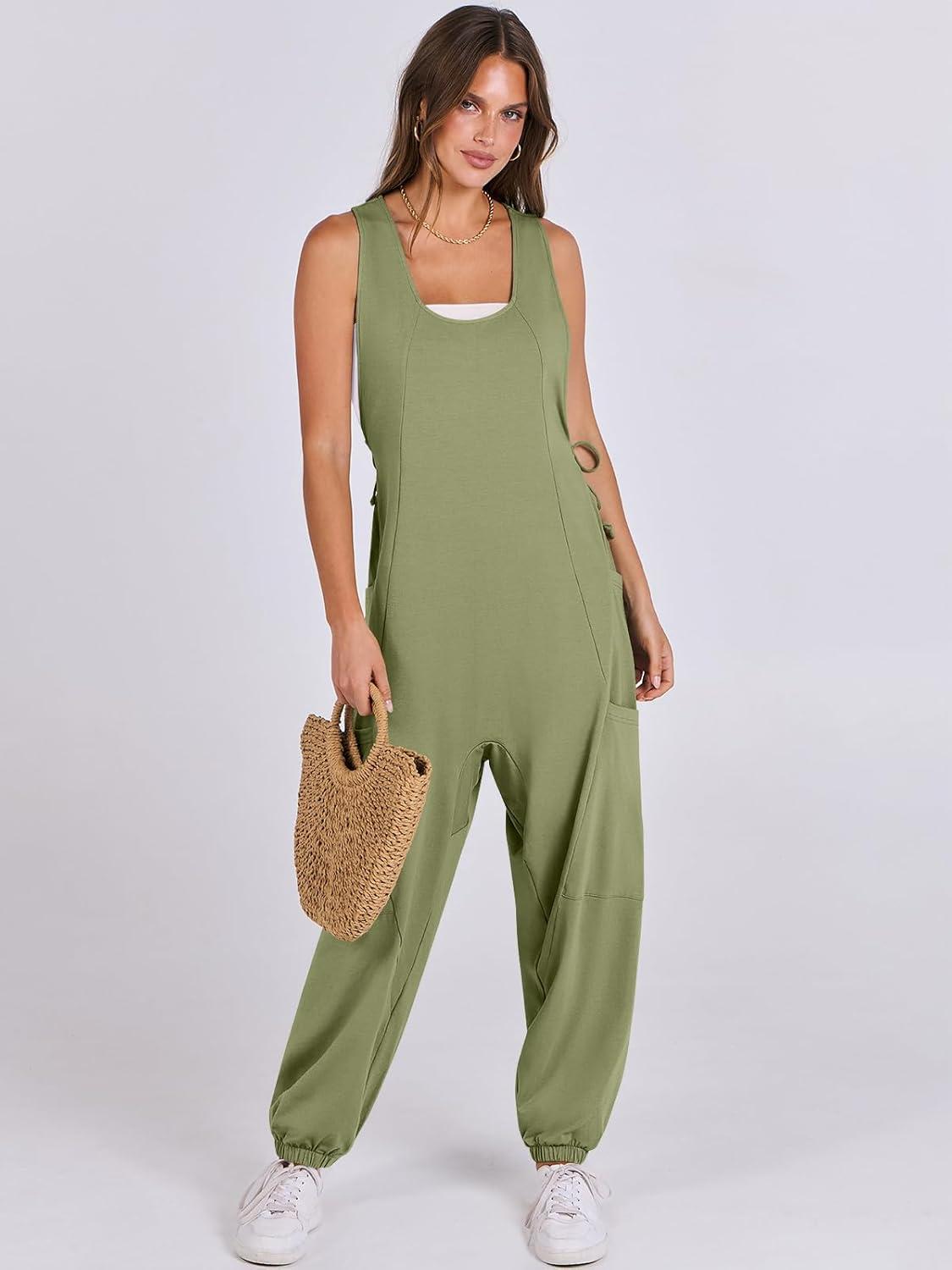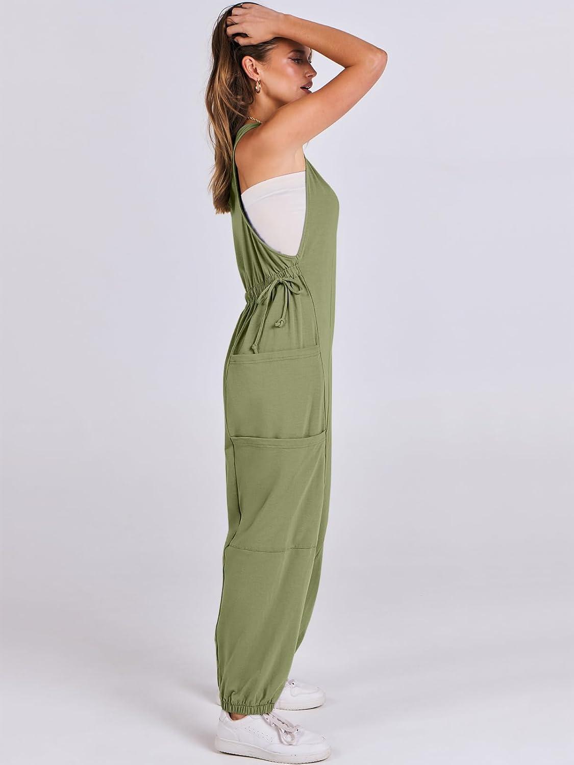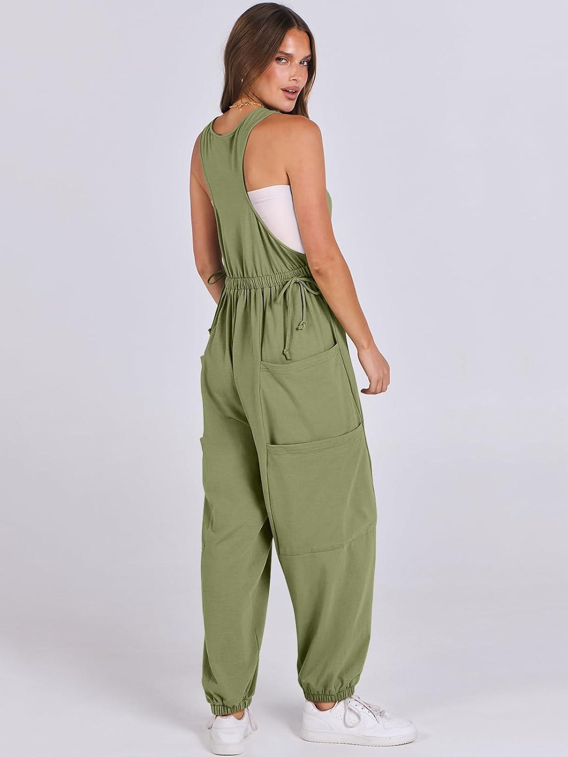 ANRABESS Women Overalls Jumpsuits Loose Casual Dressy Sleeveless Baggy Harem Pants Romper Jumpers 2025 Trendy Summer Outfits(Army Green)