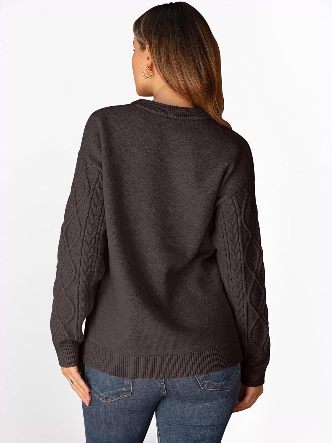 imageANRABESS Women Oversized Chunky Cable Knitted Vintage Sweater 2025 Fall Winter OutfitsCoffee