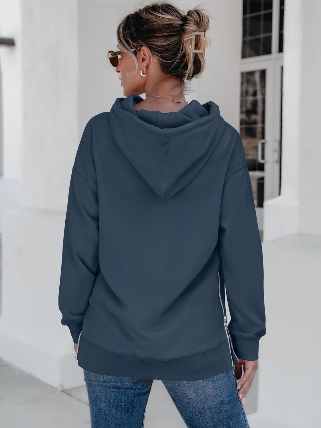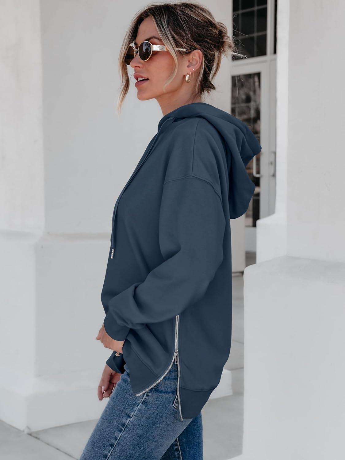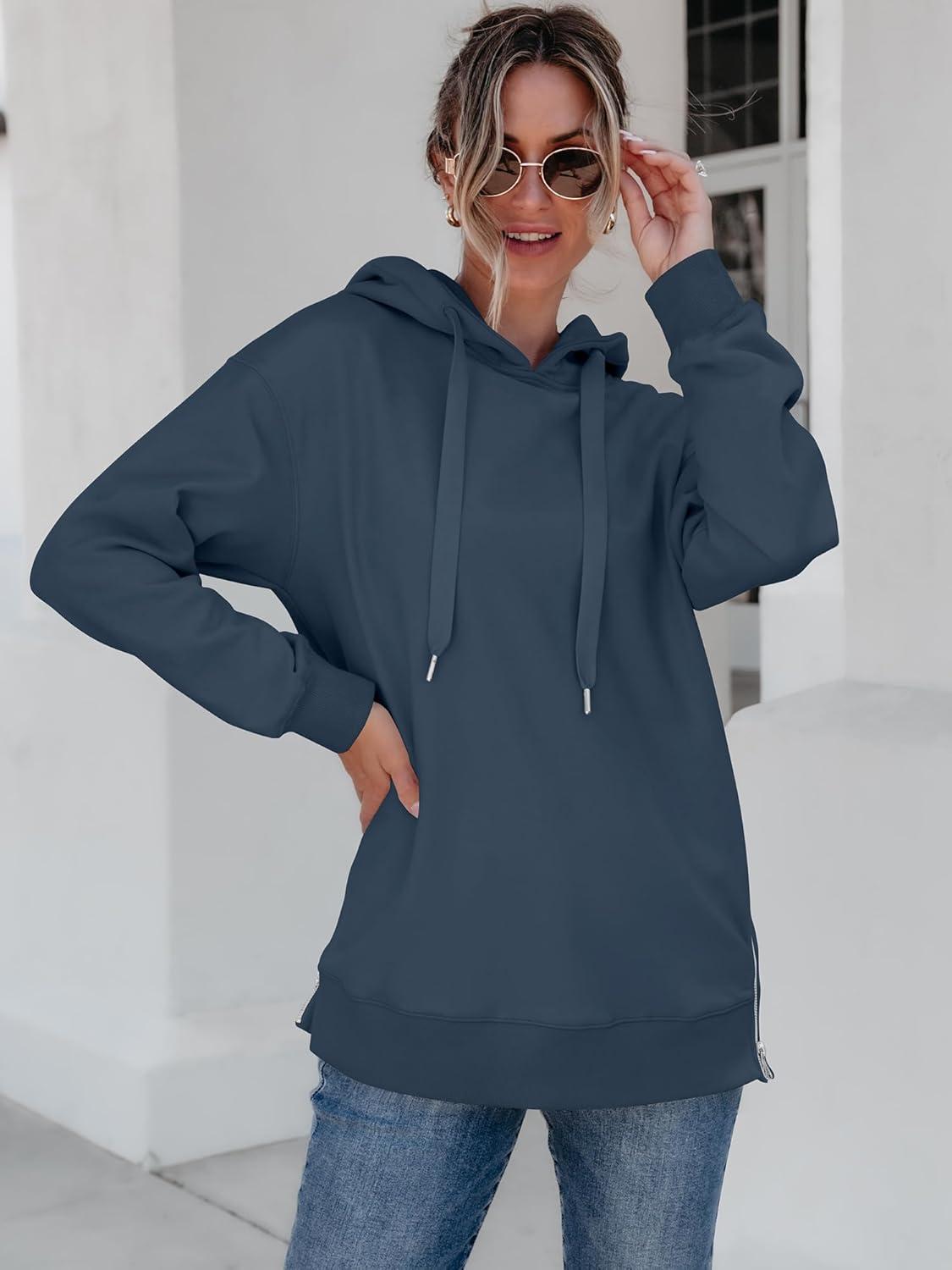 ANRABESS Women Oversized Hoodies Side Zipper Fleece Long Sweatshirts Lightweight Tunic Pullover 2025 Fall Trendy Clothes(Navy Blue)