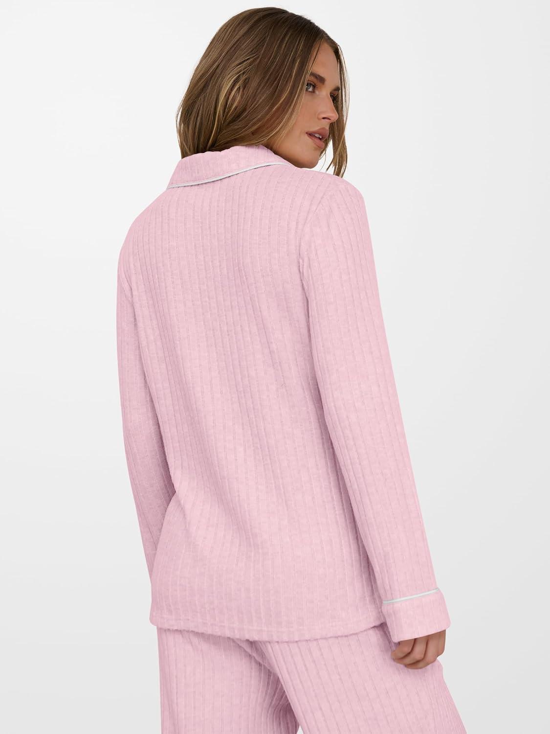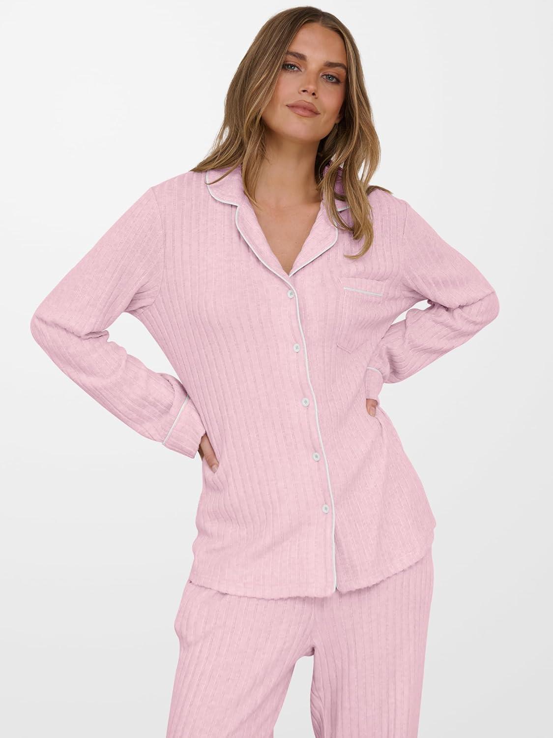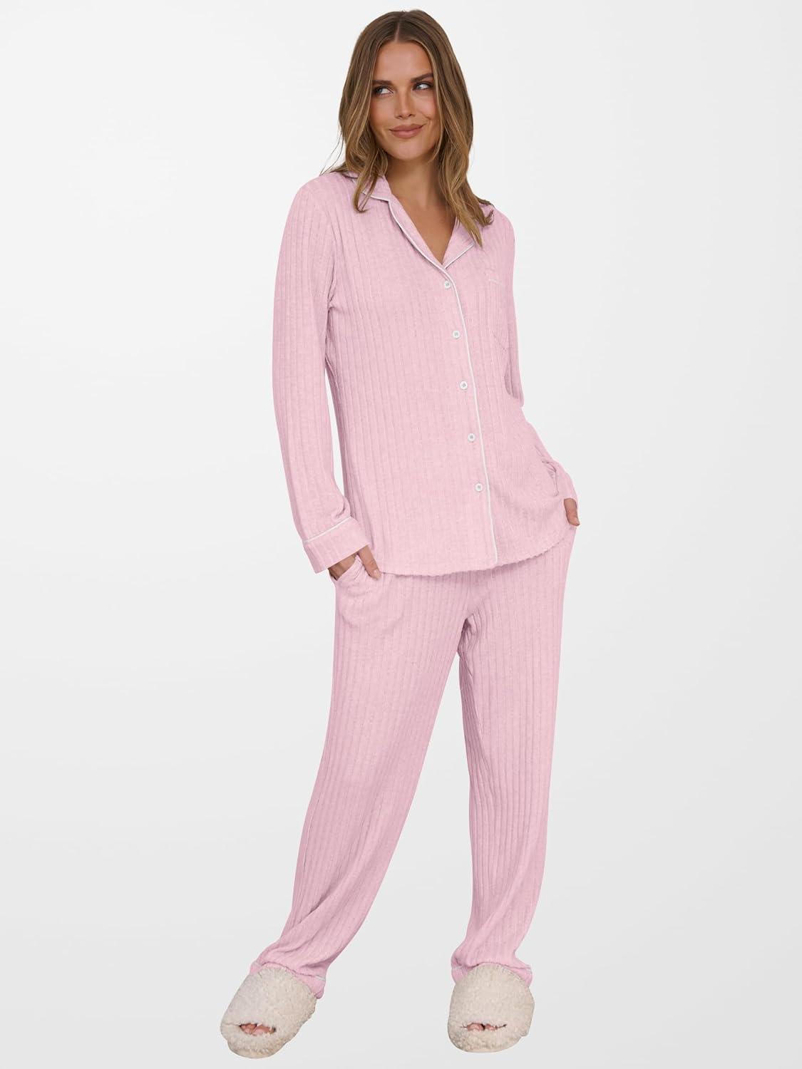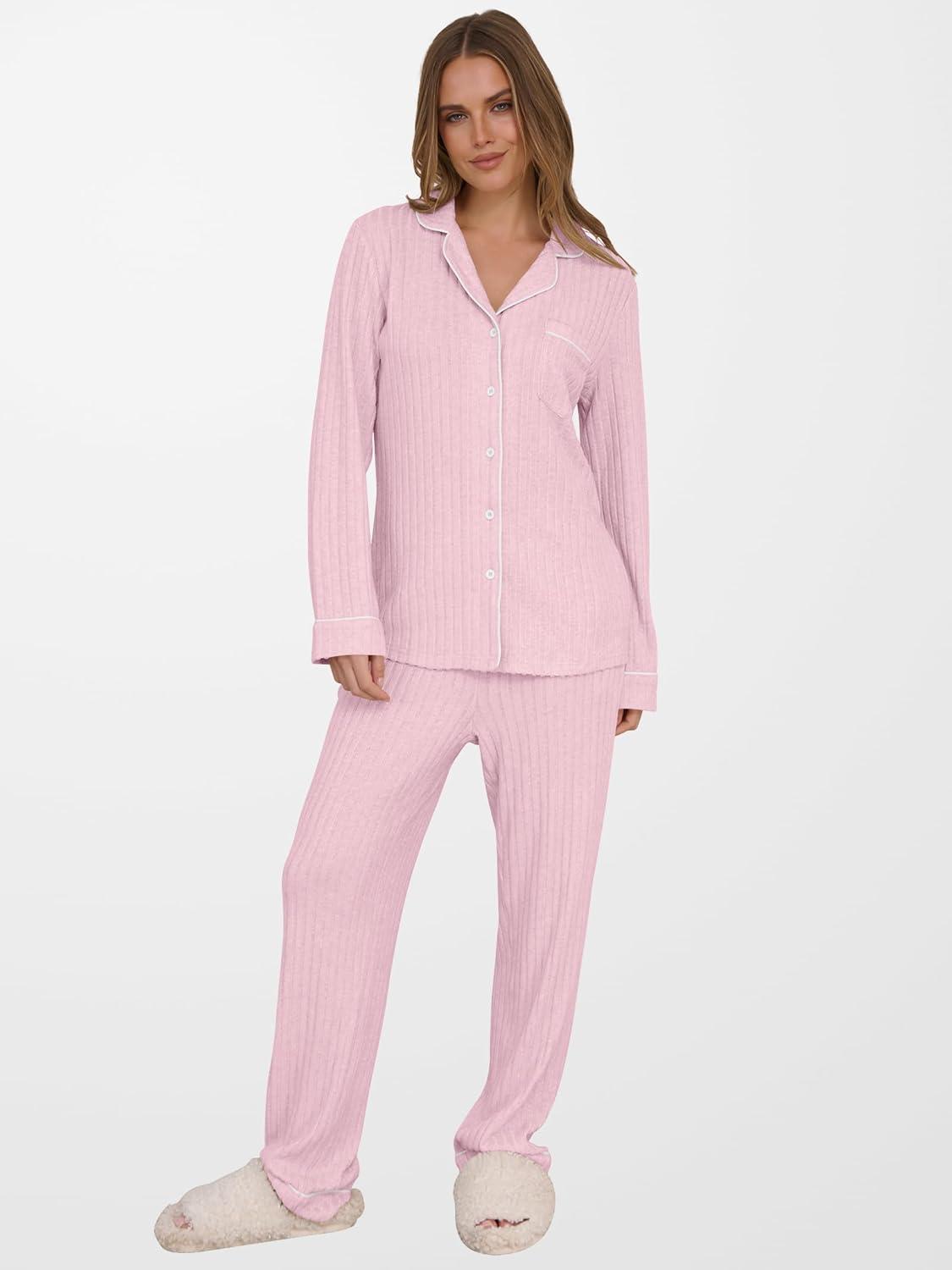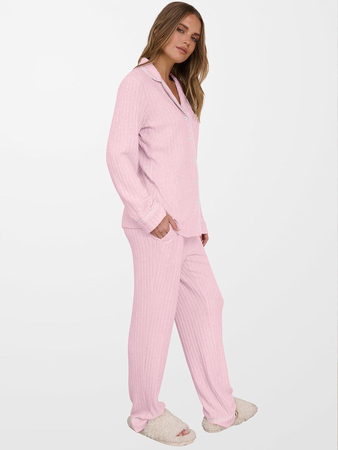 ANRABESS Womens Pajama Sets Long Sleeve Ribbed Knit Top Pant Matching Set 2025 Winter Button Down Sleepwear Lounge Nightwear