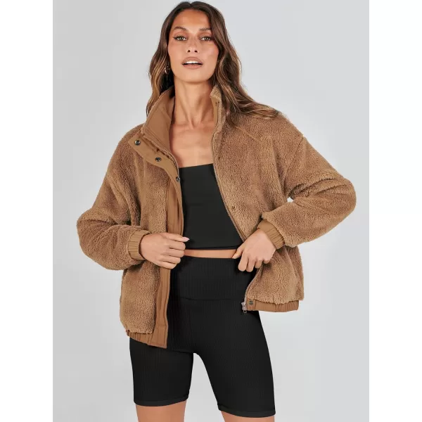 imageANRABESS Women Sherpa Fleece Jackets Casual Long Sleeve Buttons Cropped Coat Winter OutwearBrown