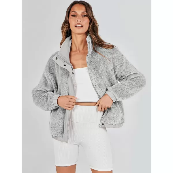 imageANRABESS Women Sherpa Fleece Jackets Casual Long Sleeve Buttons Cropped Coat Winter OutwearLight Grey