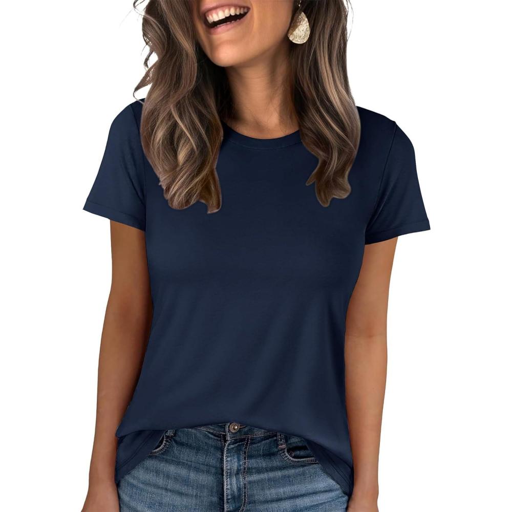 ANRABESS Women Short Sleeve Tops Summer Basic Tee Wrinkle-Free Trendy Cute T Shirts 2026 Spring Business Casual Outfits(Navy Blue)