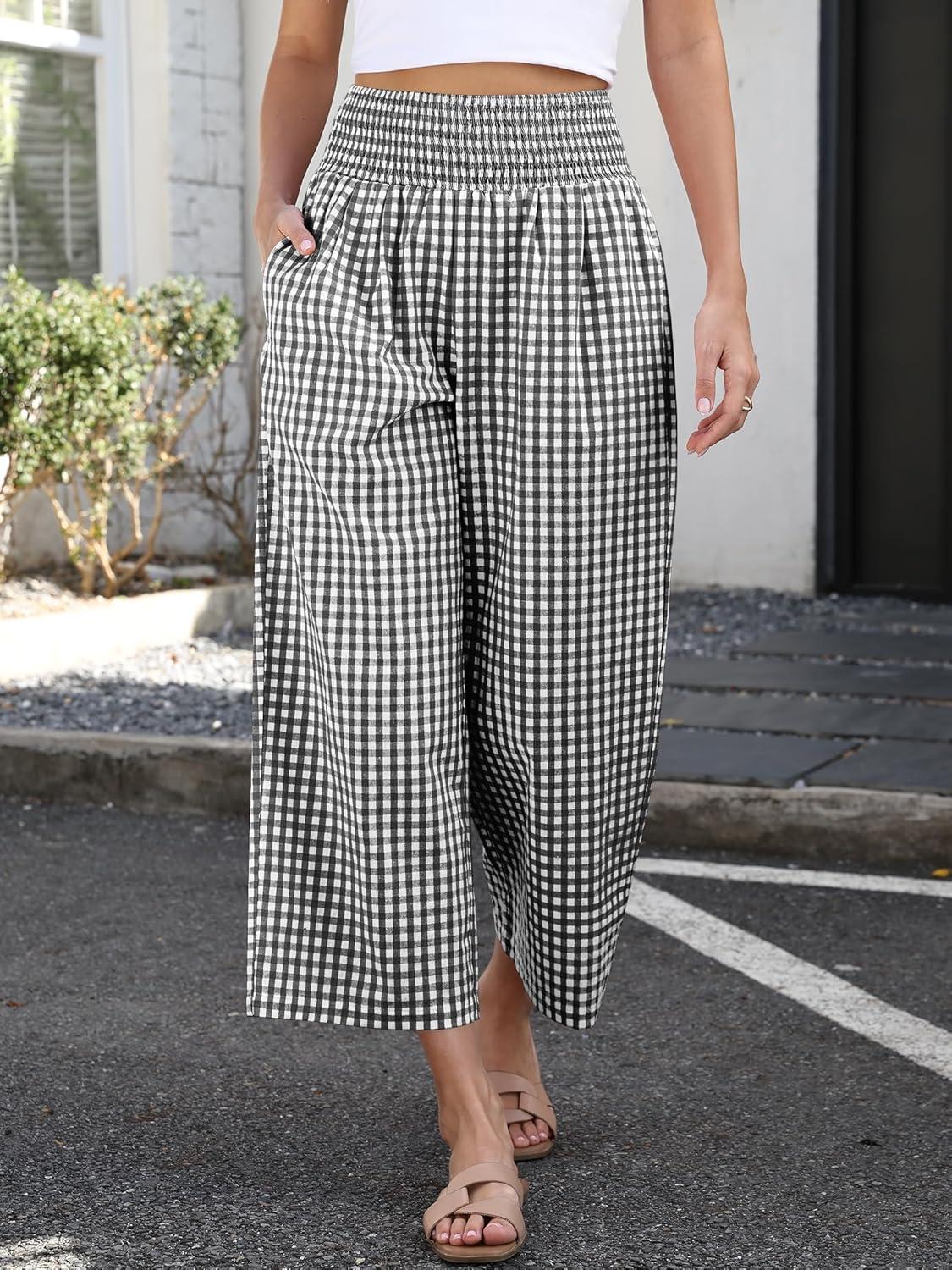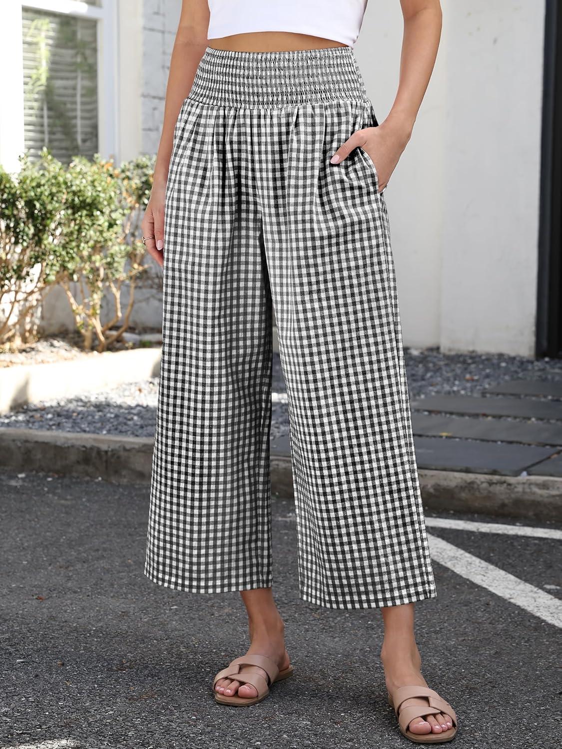 ANRABESS Women Striped Gingham Wide Leg Palazzo Pants Casual Lounge Cute Comfy Plaid Checkered Pajama PJ Bottoms with Pockets