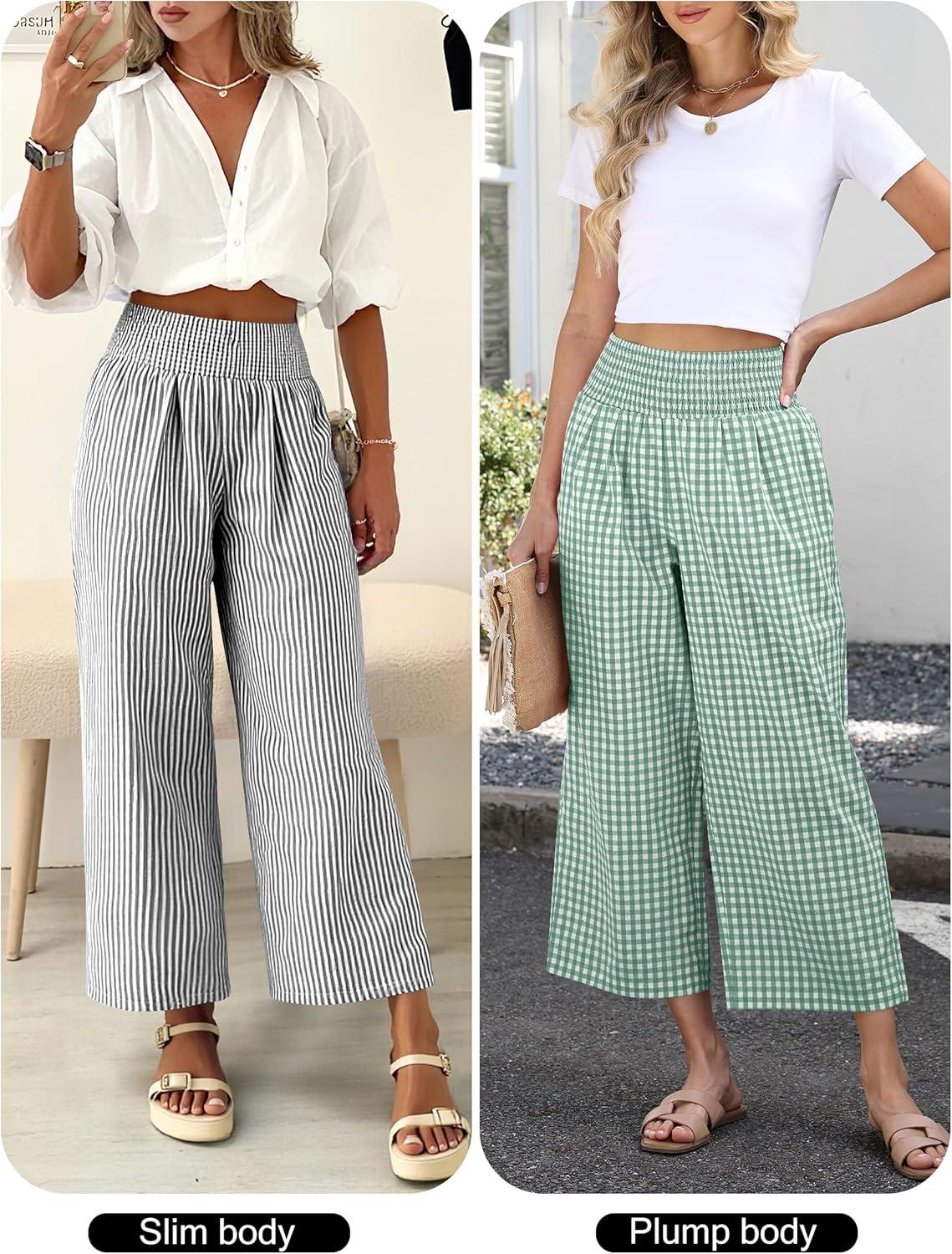 ANRABESS Women Striped Gingham Wide Leg Palazzo Pants Casual Lounge Cute Comfy Plaid Checkered Pajama PJ Bottoms with Pockets